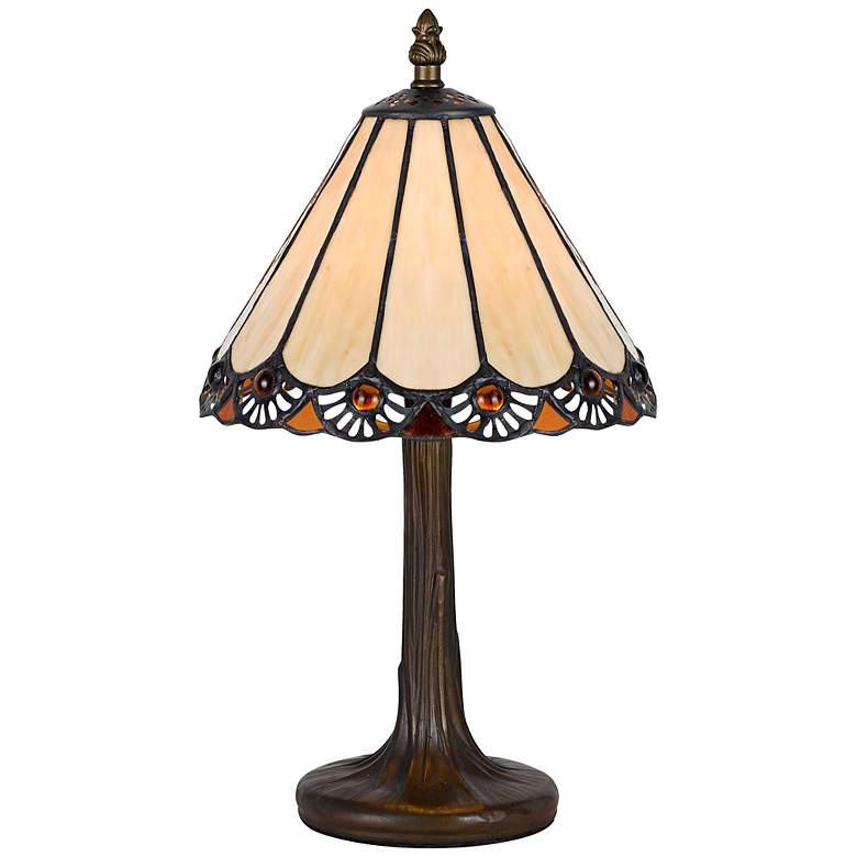 - Tiffany-style accent table lamp from the Cal Lighting brand.