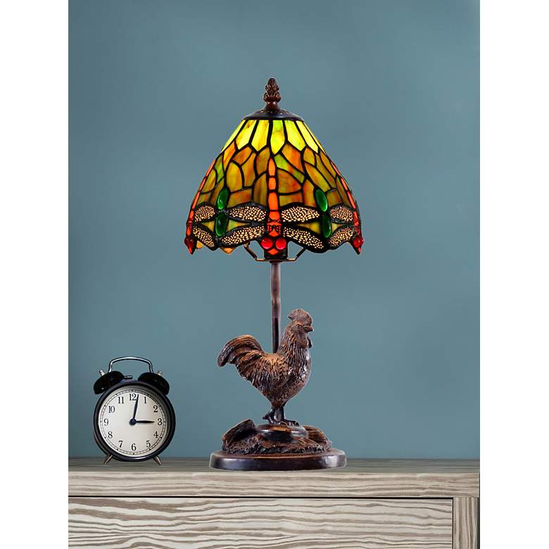 - Traditional accent table lamp from the Callico Rooster collection by Dale Tiffany.
