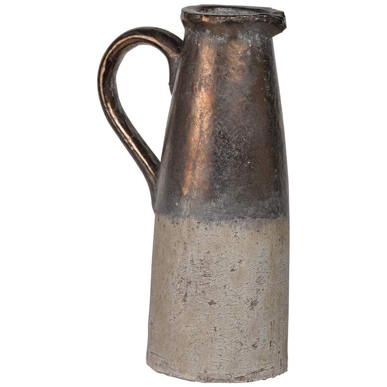 Showcase your love for antique artwork with the A&B Home Candia ceramic pitcher. Boasting a beautiful tan and brass finish, this pitcher can serve a wide variety of uses. The ceramic body and antique design combine to create a great decoration for a living room or hallway setting.
