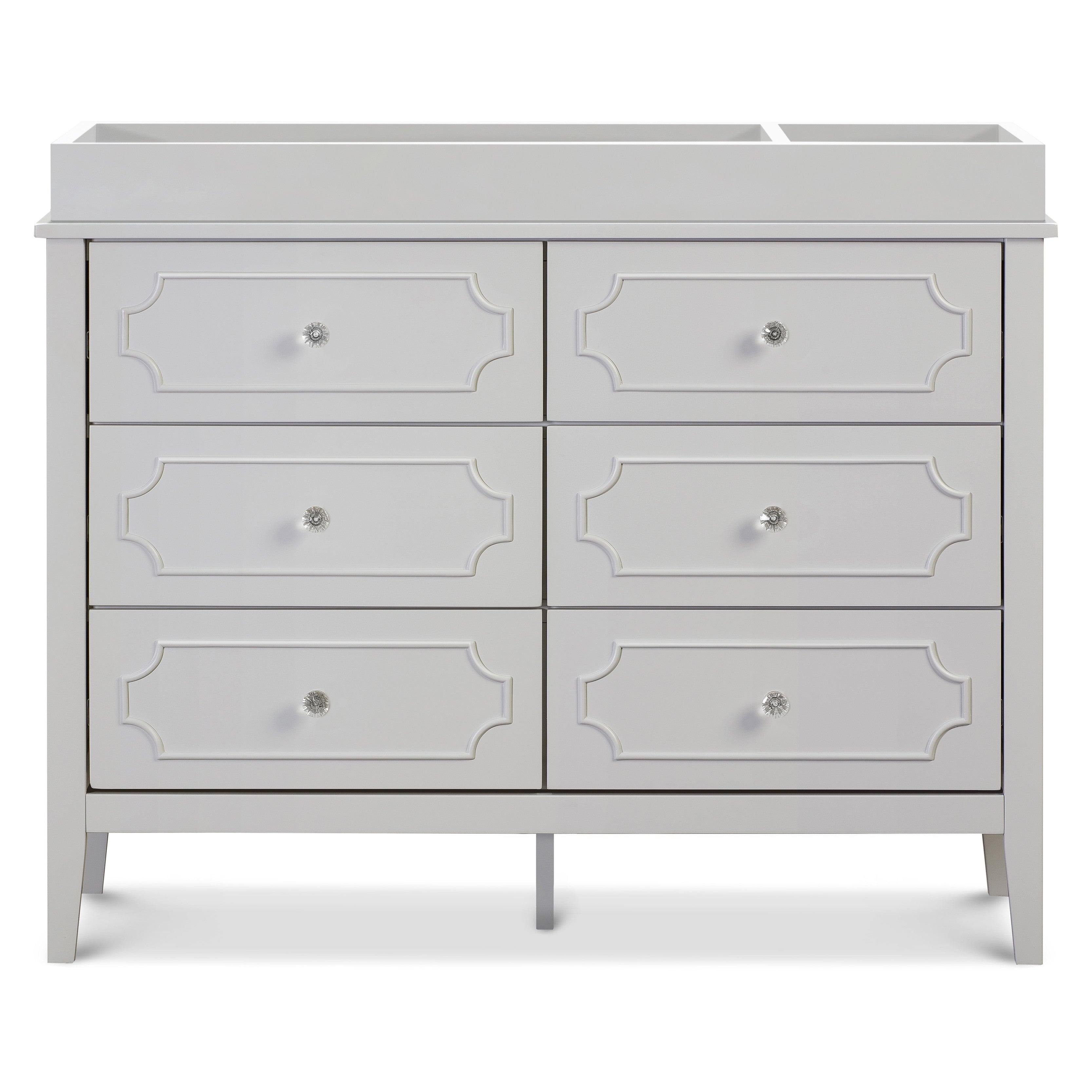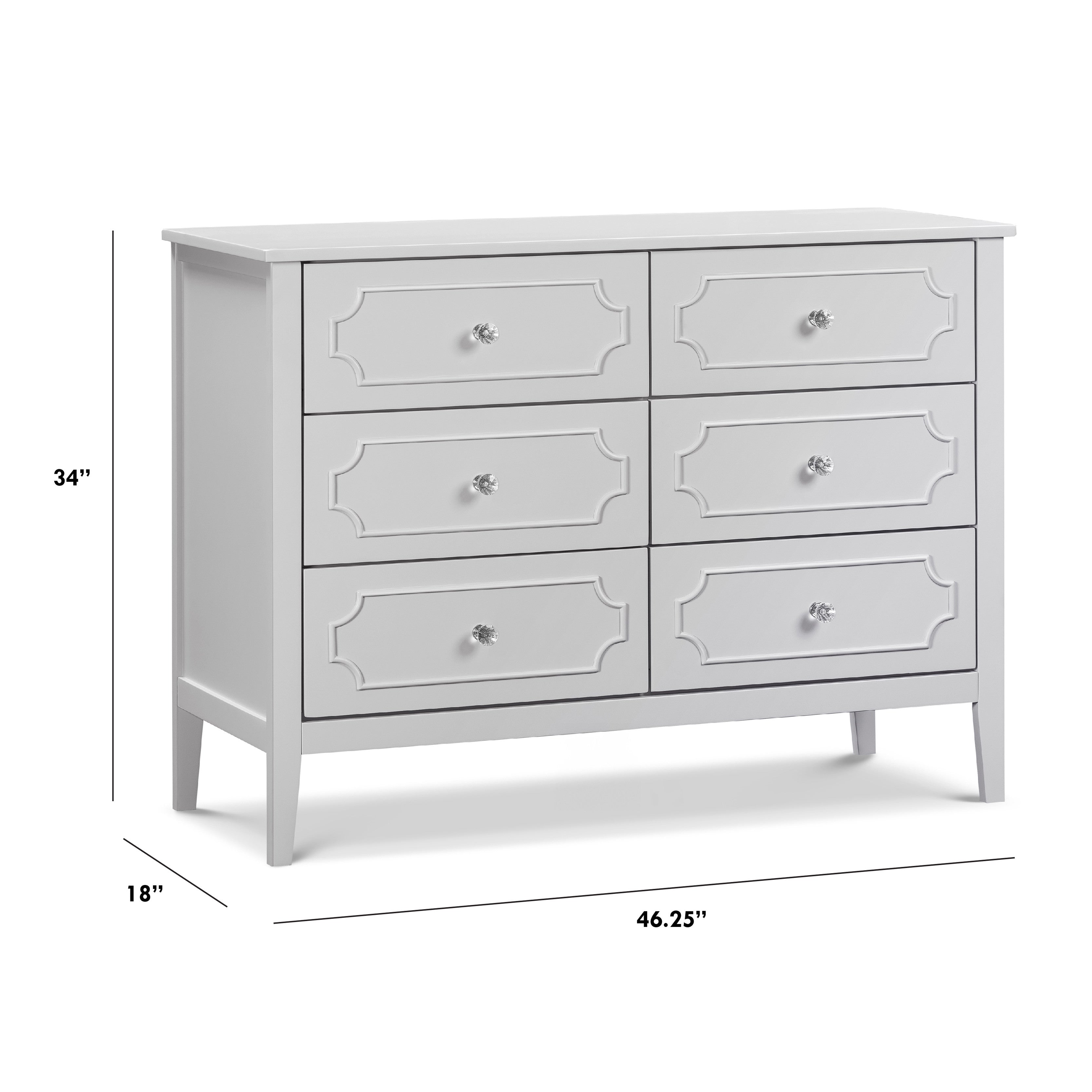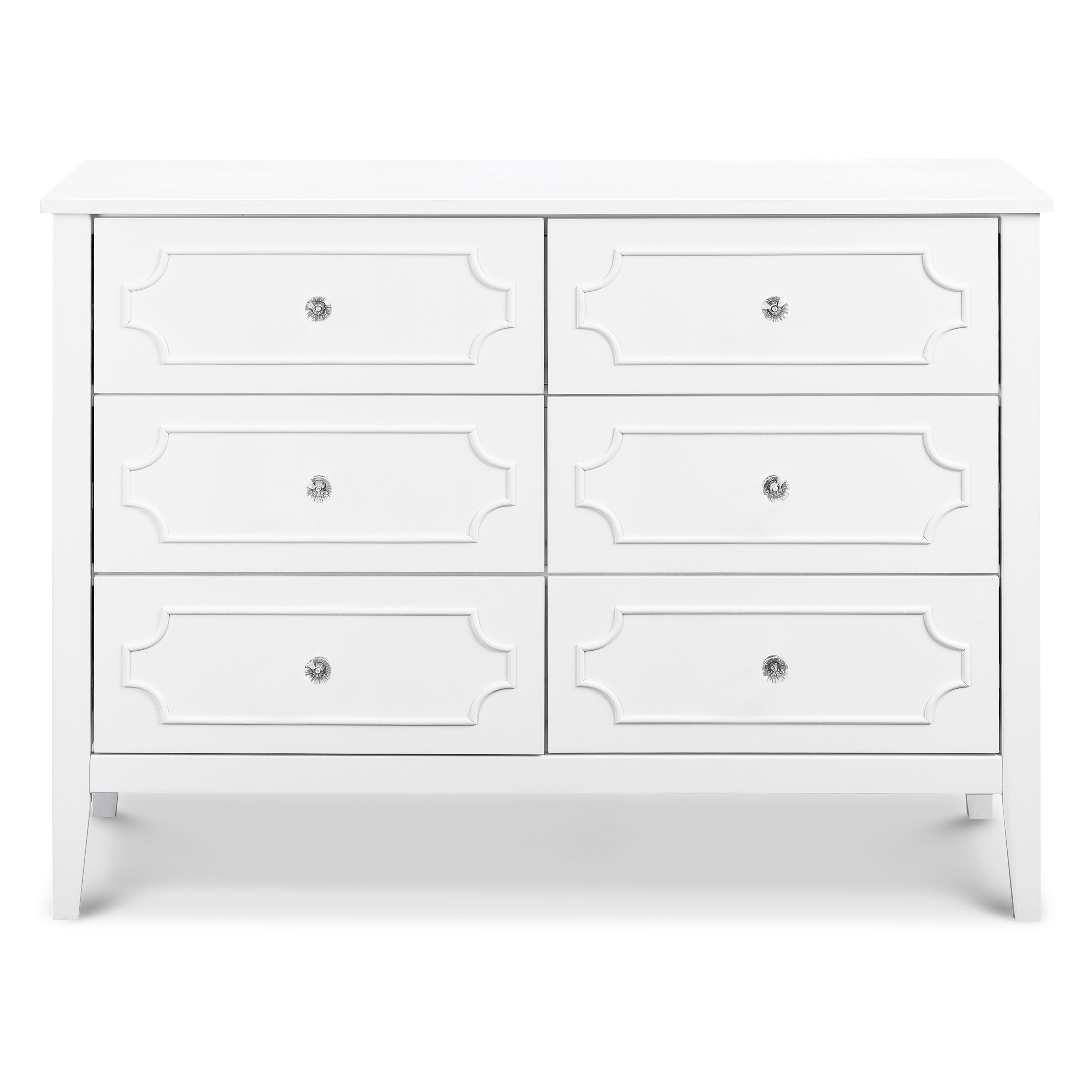 The Chloe Regency 6-Drawer Dresser is the perfect match to the Chloe Regency 4-in-1 Convertible Crib. Featuring elegant molding details and crystal knobs, this dresser is sure to add the perfect touch of luxury to any nursery.