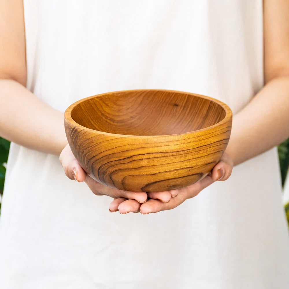 ONE TOUGH BOWL: Teak is famous for its extreme durability. Luxury houses, outdoor furniture, and even high end boats are built from it. These bowls are heavy, made to last a lifetime in the kitchen and can become a family heirloom.