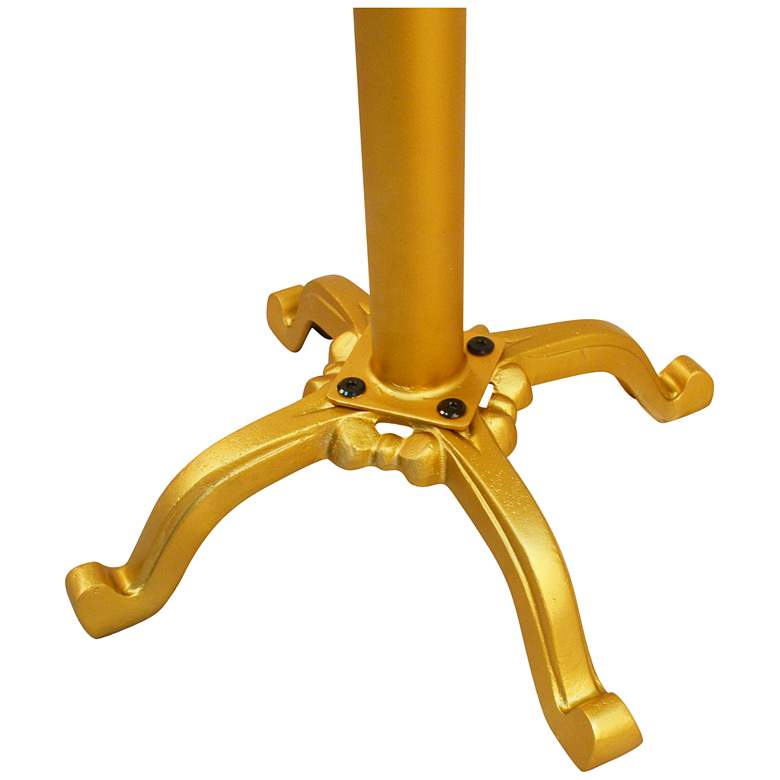 - Elm stained mango wood top. Powder-coated gold finish over cast iron base. Detailed claw foot.
