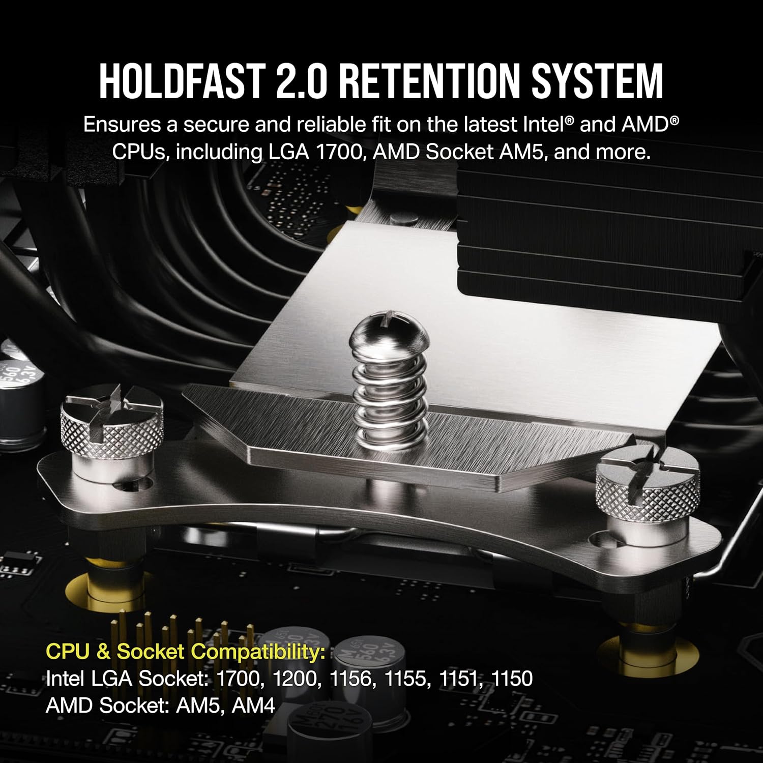 - CORSAIR HoldFast 2.0 Retention System with LGA 1700 and AM5 brackets: Ensures consistent thermal performance with a secure and reliable fit on the latest Intel and AMD CPUs, including LGA 1700, 1200, 115x, and AMD Socket AM5 and AM4