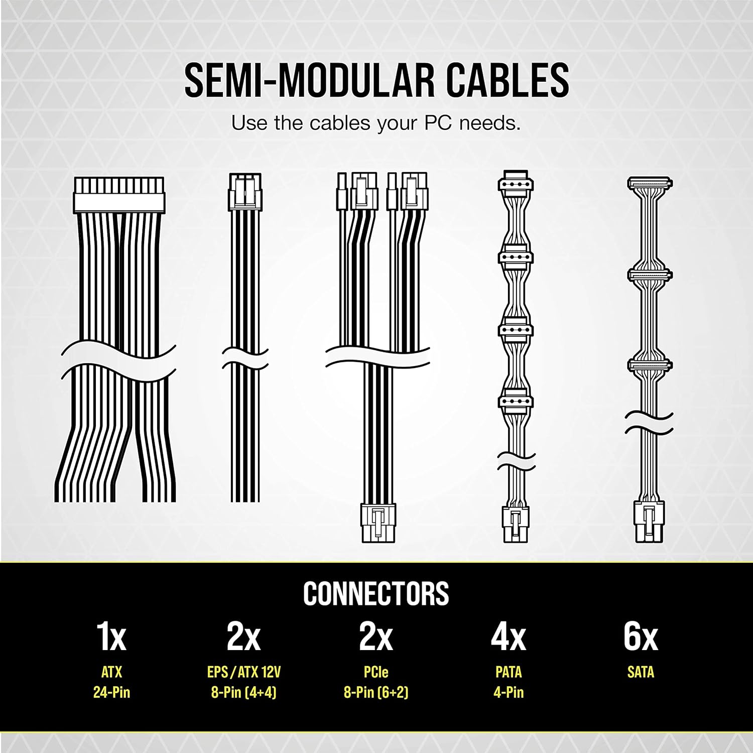 - Semi-modular cabling with Dual EPS12V connectors lets you connect only the cables you need for a clean build with easy cable management.