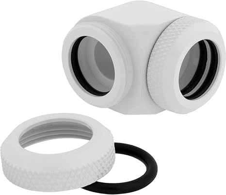 Size: 90° 14mm Material: Brass Brand: Corsair Color: White Connector Type: ATX Thread Size: RM Exterior Finish: Brass Thread Type: BSPP Item Weight: 0.14 Kilograms Number of Pieces: 2 About this item: Machined from solid brass for superior quality and durability. High-quality polished finish for a flawless look. A double o-ring compression fitting design creates a dual-level seal around your hardline tubing. Fits 14mm outer diameter hardline tubing.