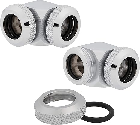 Corsair Hydro X Series, XF Hardline 90° 12mm OD Fittings, Four Pack (Solid Brass Durability, Fits 12mm Outer Diameter Hardline Tubing) Chrome