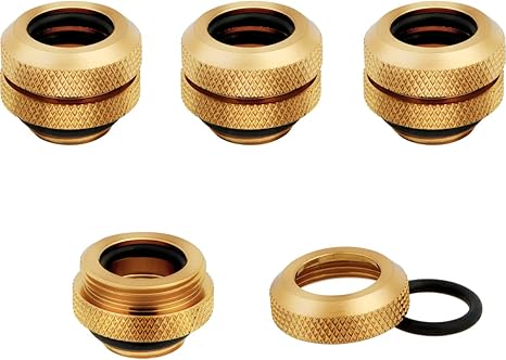 Corsair Hydro X Series, XF Hardline 12mm OD Fittings, Four Pack (G1/4" BSPP Port Threads, Solid Brass Durability, Compatible with Additional Hydro X Adapters) Gold