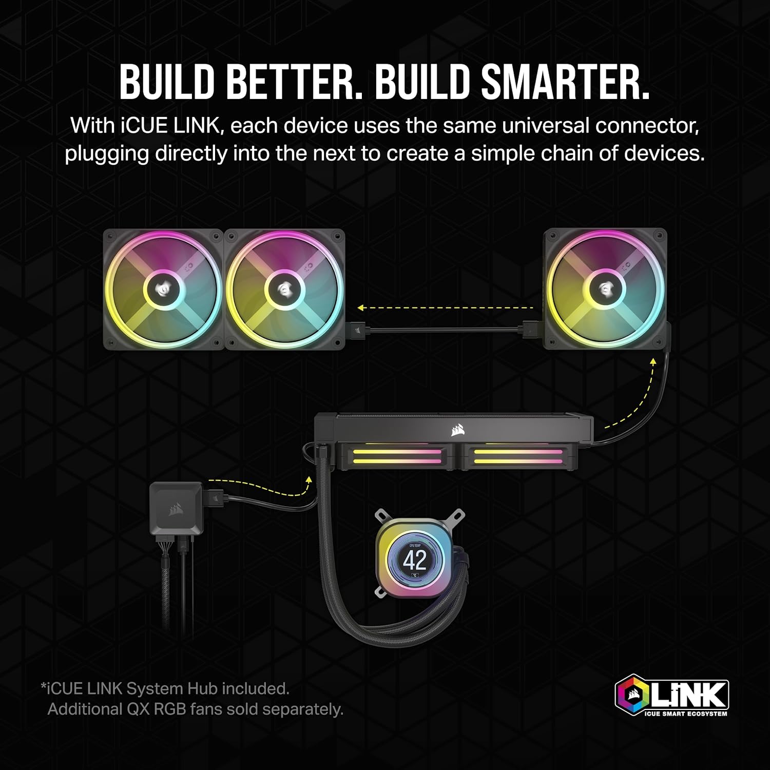 - Seamless Personalization: Enjoy powerful, low-noise cooling with a personalized LCD screen, all with simplified hidden connections thanks to the patent-pending iCUE LINK ecosystem