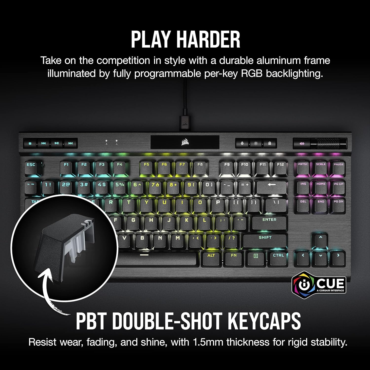 Corsair K70 RGB TKL CHAMPION SERIES Tenkeyless Optical-Mechanical Gaming Keyboard (OPX RGB Keyswitches, PBT Double-Shot Keycaps, Detachable USB-C Cable) QWERTY, NA Layout - Black