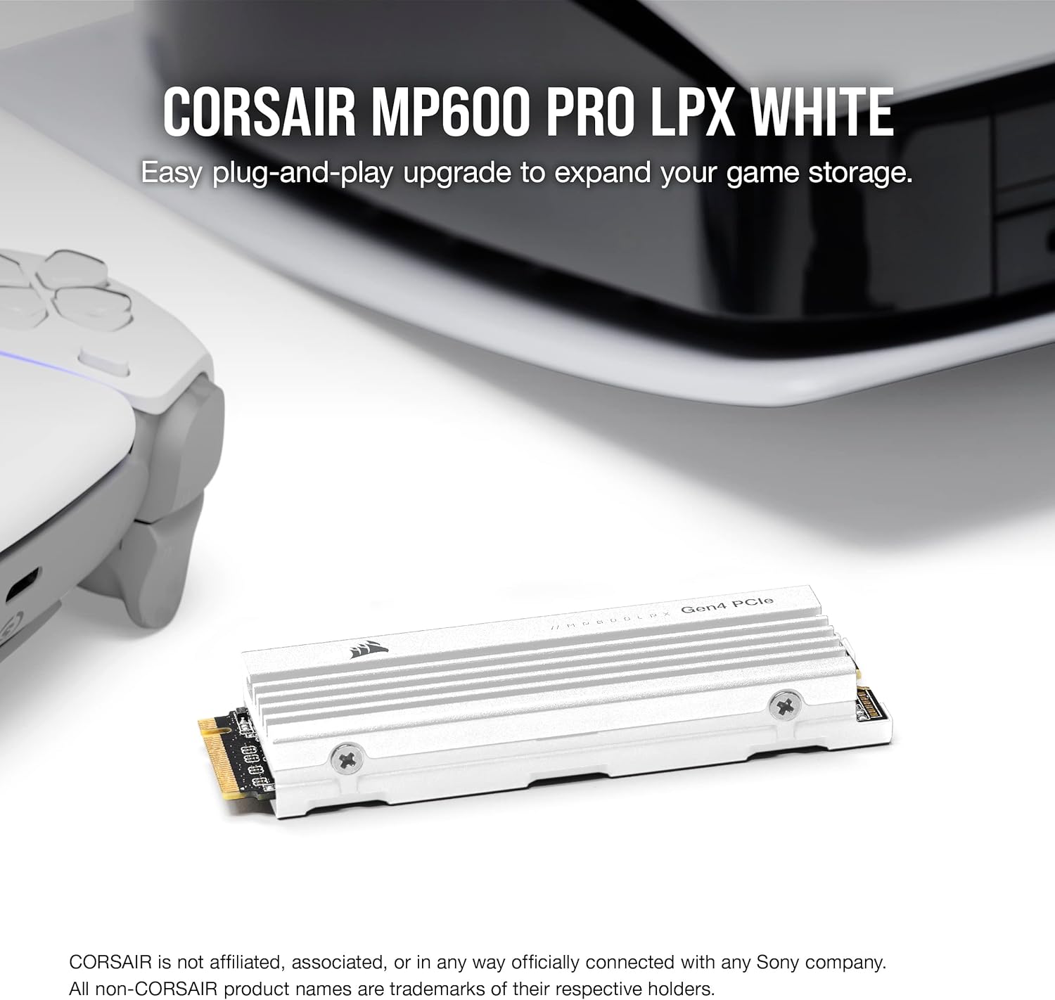Corsair MP600 PRO LPX 2TB M.2 NVMe PCIe x4 Gen4 SSD - Optimised for PS5 (Up to 7,100MB/sec Sequential Read & 6,800MB/sec Sequential Write Speeds, High-Speed Interface, Compact Form Factor) White