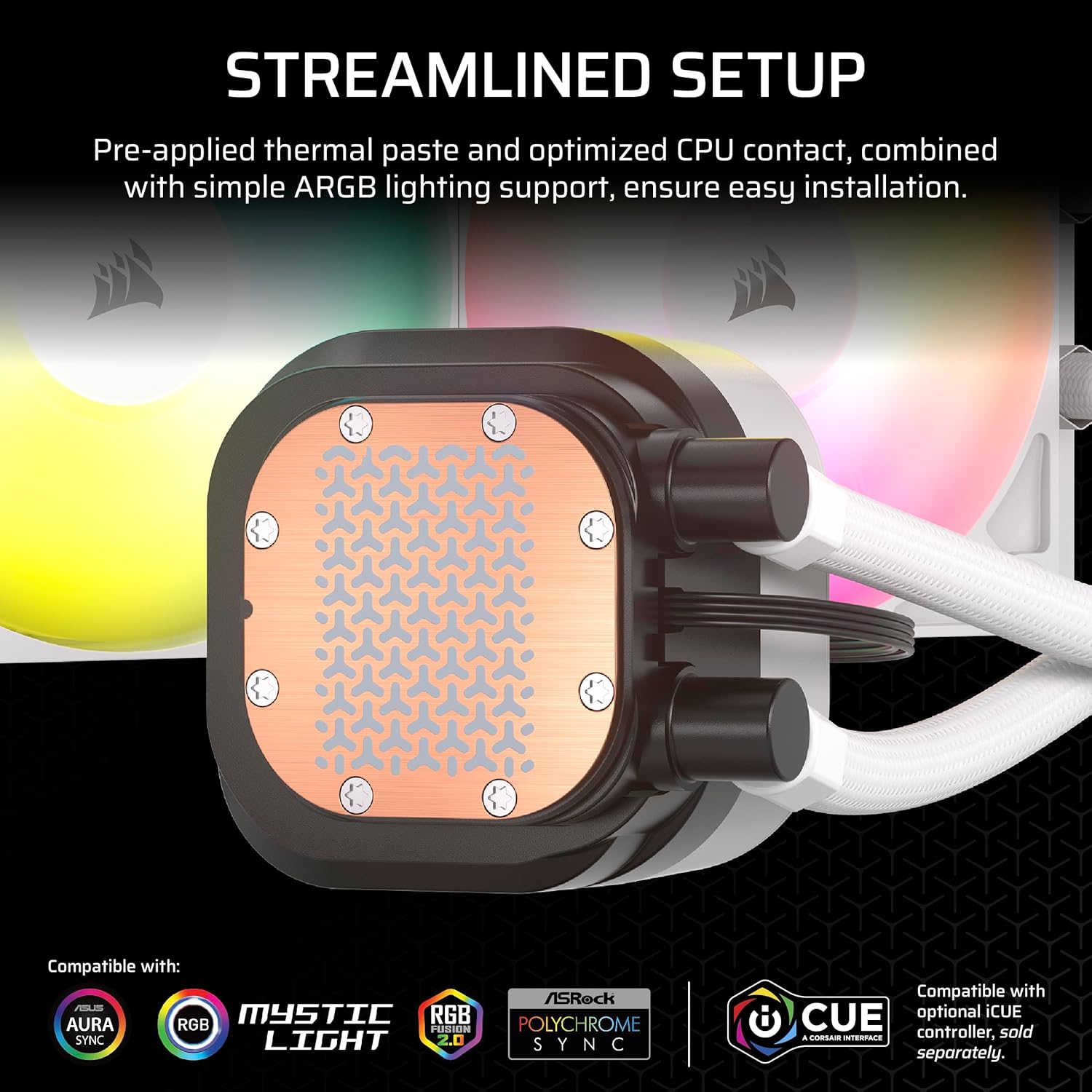 CORSAIR Nautilus 240 RS ARGB Liquid CPU Cooler – 240mm AIO – Low-Noise – Direct Motherboard Connection – Daisy-Chain – Intel LGA 1851/1700, AMD AM5/AM4 – 2X RS120 ARGB Fans Included – White