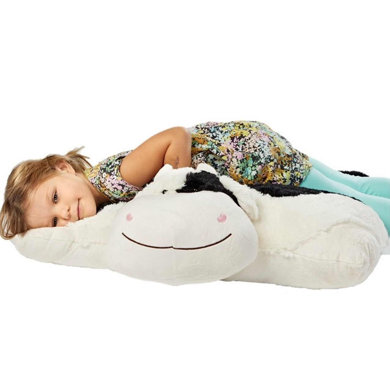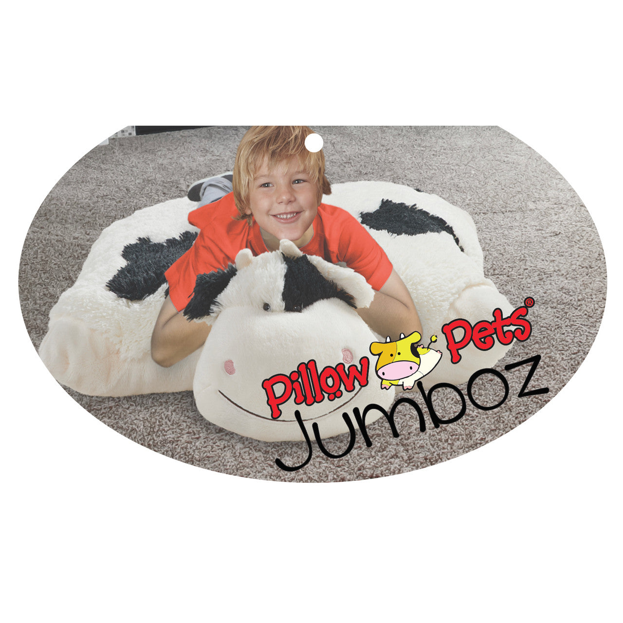 Giant fun for everyone! Simply sweet, fluffy and fabulously soft, Jumbo Pillow Pets are extra-large sized and pack a ton of fun! They are perfect for playtime, and are comforting cuddle buddies at bedtime. Surprise your little one with a Jumbo Cow Pillow Pet that they will love endlessly as a child, snuggle with as a teen, and end up taking to college. Pillow Pets bring joy, security, comfort and smiles to all ages. Super soft, parent approved, fun and functional, high quality plush designs that last through childhood and beyond.