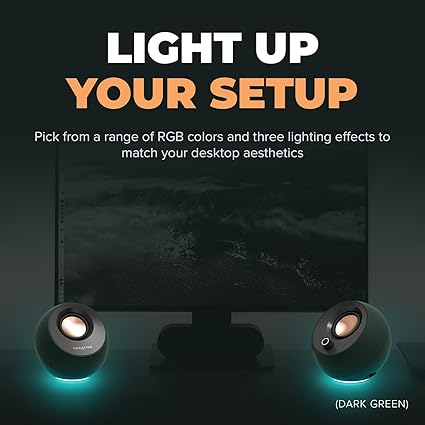 - LIGHT UP YOUR SETUP WITH RGB - With a range of RGB LED lights and 3 lighting effects to choose from, create a setup that fits your vibe. Creative Pebble Pro’s RGB lights let you cycle through a spectrum of colors, get into groove with pulsate mode, or even keep it simple with a single-color glow. When it’s time to call it a day, turn the RGB rings off easily via the RGB control button