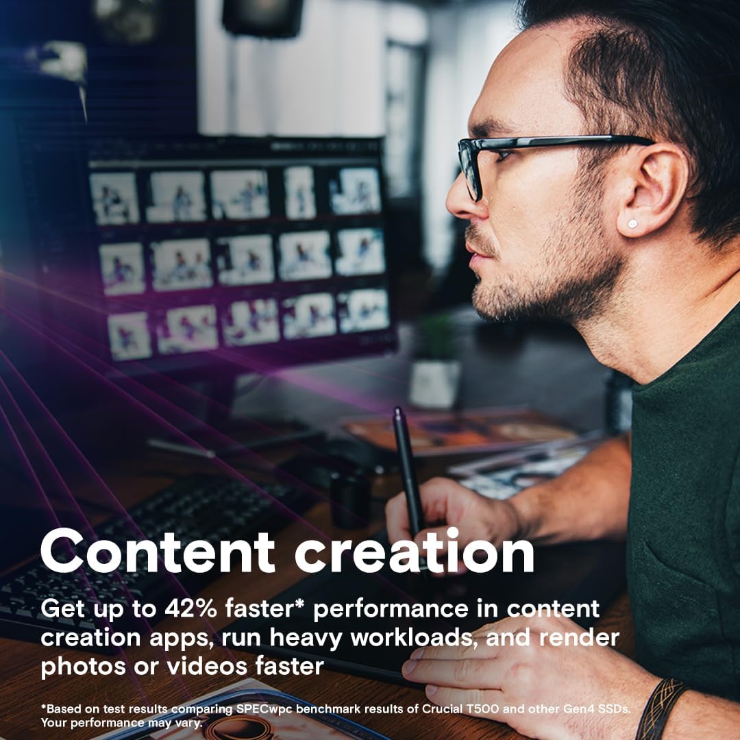 - ADOBE CREATIVE CLOUD: Get one month of Adobe Creative Cloud All-Apps plan on us when you purchase and register the Crucial T500 SSD10