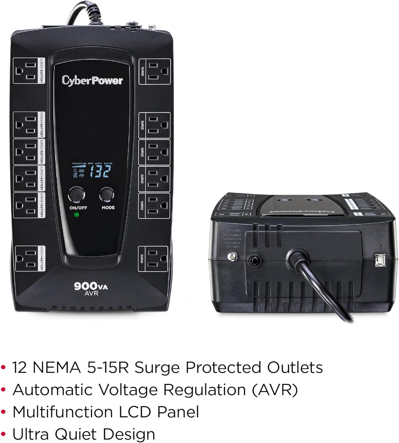 CyberPower AVRG900LCD Intelligent LCD UPS System, 900VA/480W, 12 Outlets, AVR, Compact Brand: CyberPower Battery Cell Composition: Lead Acid Product Dimensions:... Read more Read more