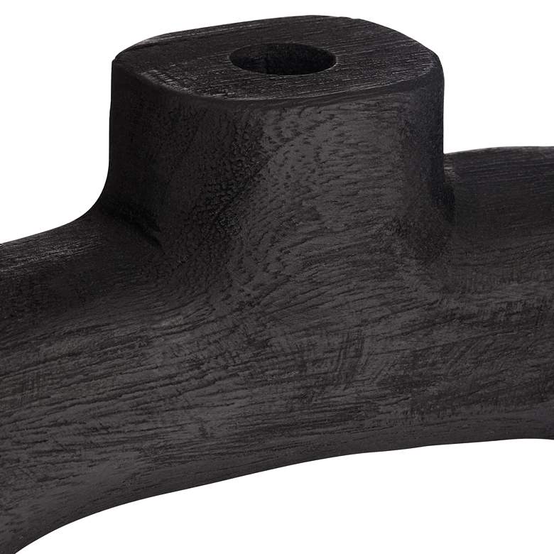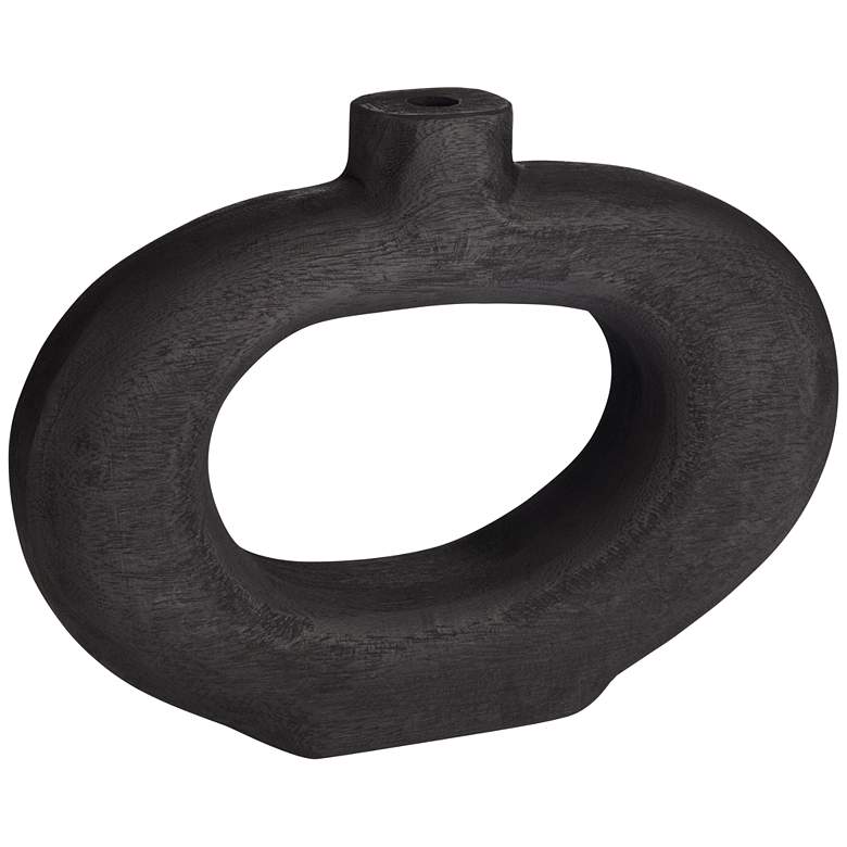 A hollow center creates bold style for a modern wooden vase. Its round shape is enhanced with wood construction and plenty of surface texture, including spots, pits, and cracks that bring a sense of authenticity. Its black finish plays up the textural details to perfection, creating a true centerpiece-worthy design for your home.