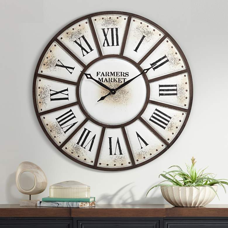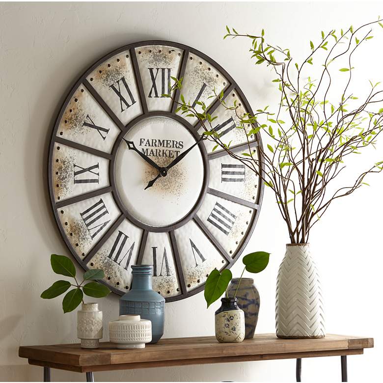 Dahlia Studios Farmers Market 39 1/4" Wide Rustic Metal Wall Clock