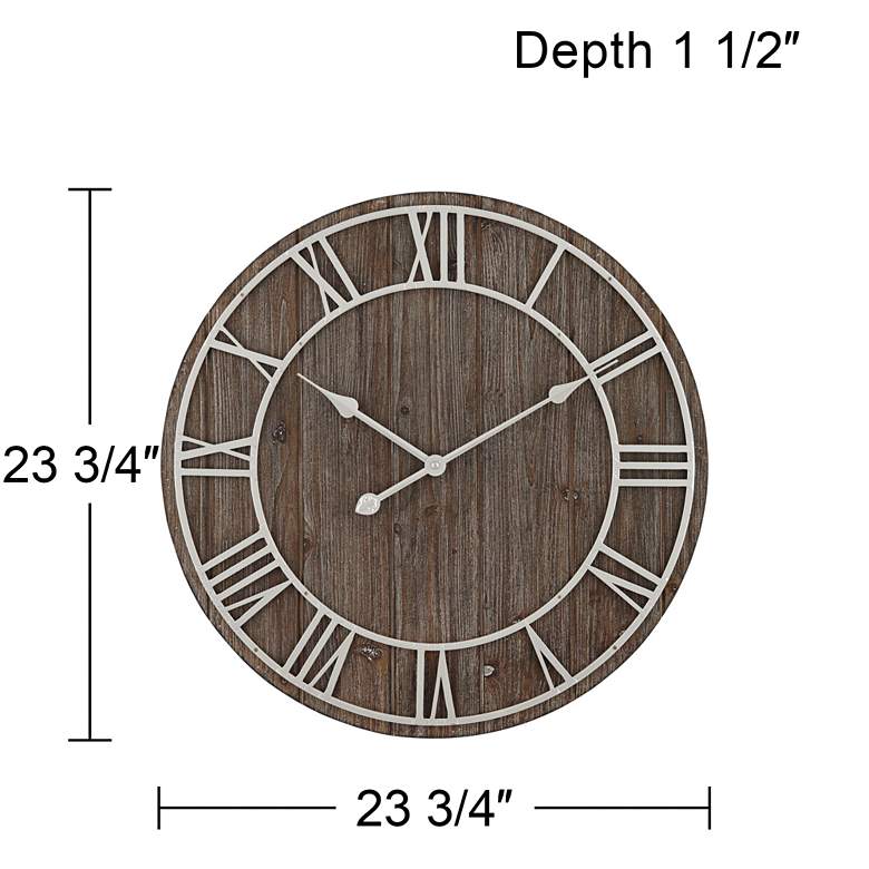 - 23 3/4" wide x 23 3/4" high x 1 1/2" deep. Clock face only is 13 3/4" wide x 13 3/4" high.