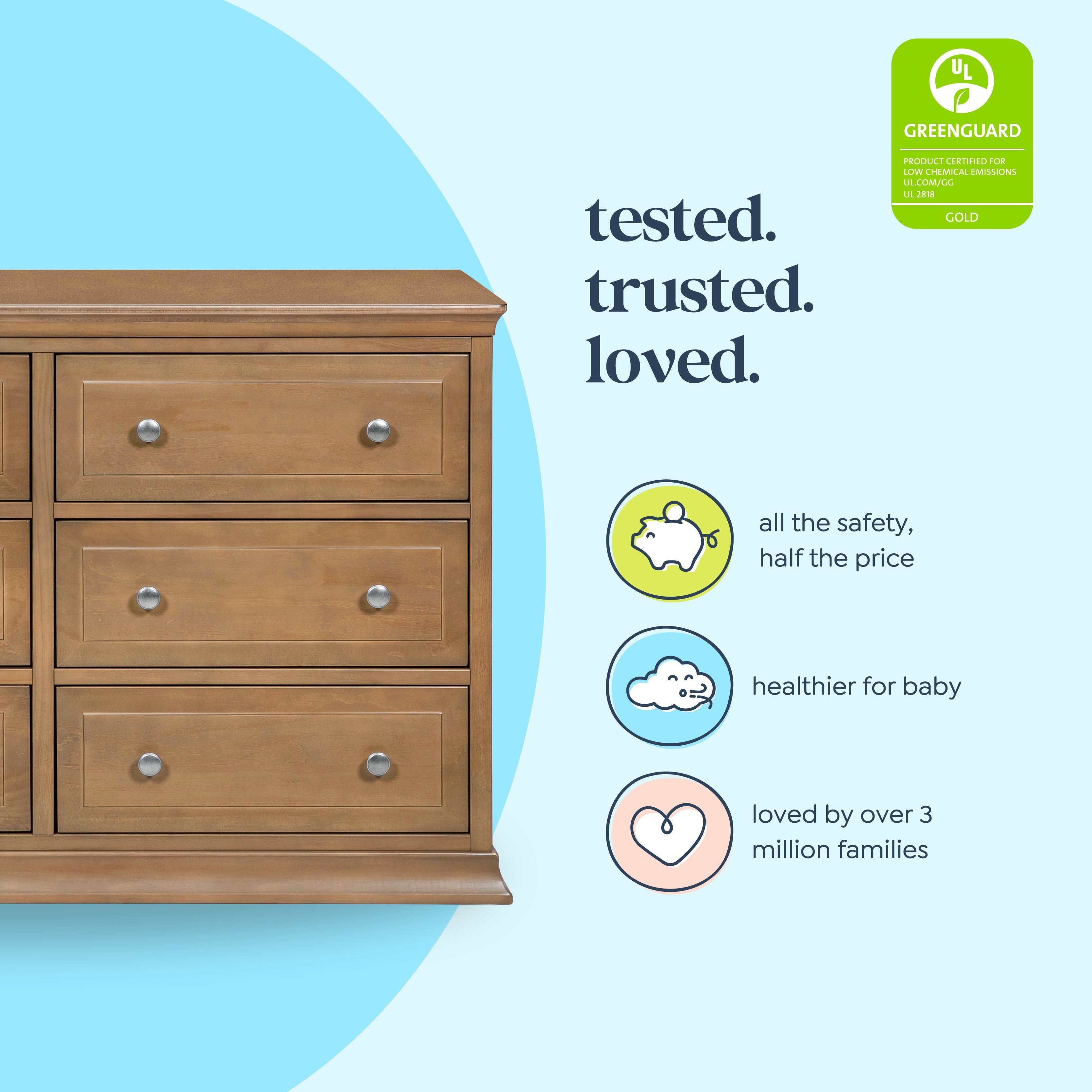 With its sharp design and stately appeal, the Signature 6-Drawer Double Dresser is as functional as it is regal. It has six large drawers that offer ample storage space for all of your baby’s needs.