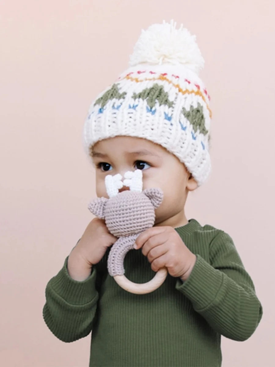 A classy cotton baby teether with a rattle to entertain your little ones or lull them to sleep. Pair with a blanket or hat for a complete gift set. Shop all our teethers to find the perfect one for your little.