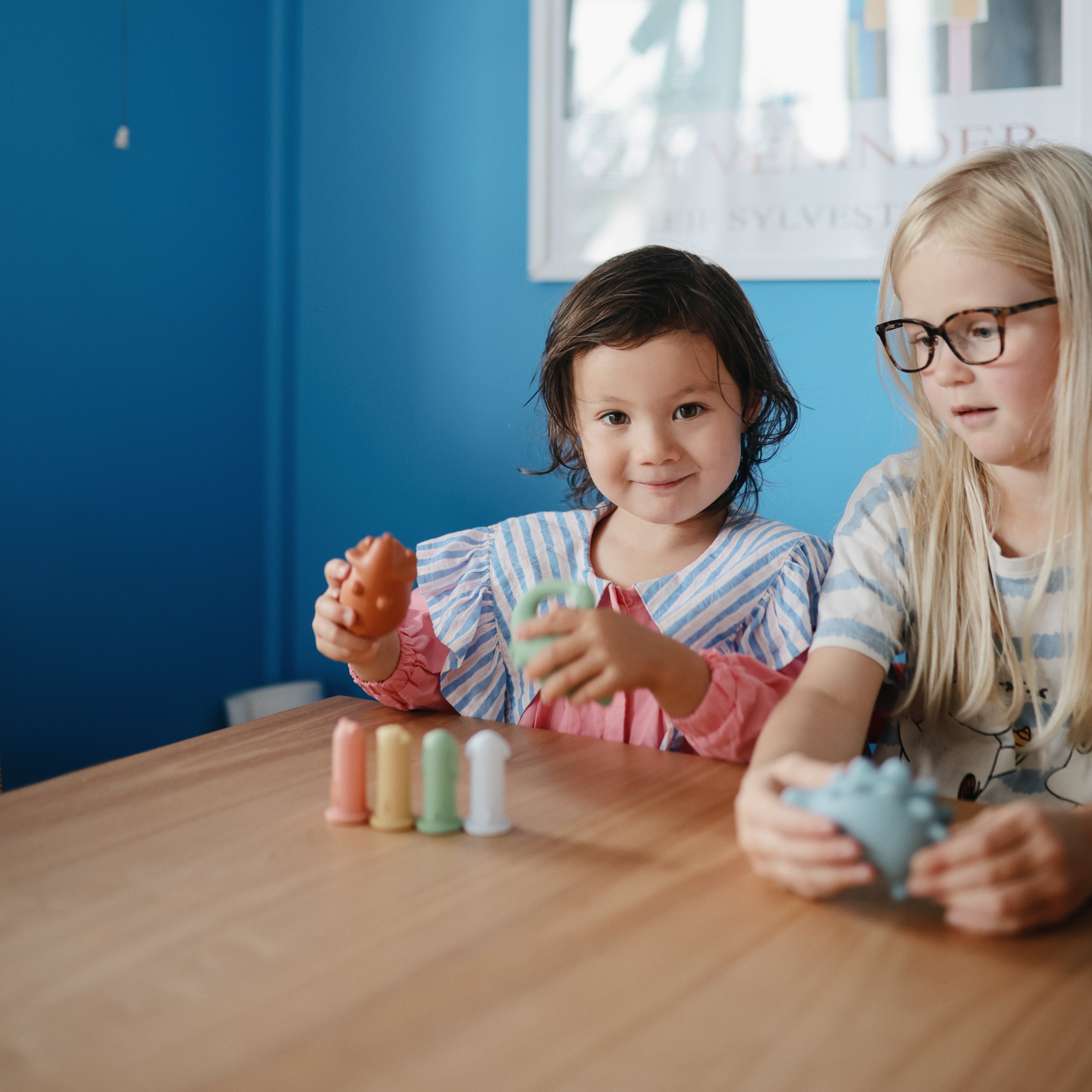 Make a splash at bath time with the Mushie dino bath play set that includes three friendly dinosaurs and an egg with adorable baby dino nestled inside. Made from 100% food grade silicone, the soft material is easy for little hands to hold while wet or dry.