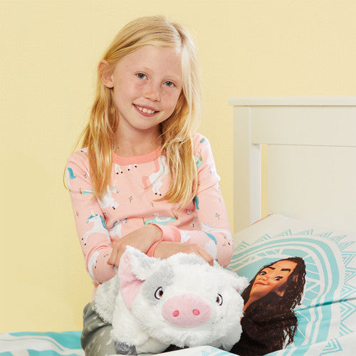 Go on your next voyage and adventure with Disney's Moana Pua Pillow Pet, the sweetest pig you’ll ever find and so cuddly you’ll never want to put it down! Bring smiles to Moana fans of all ages by offering the fun, friendship, and love of Pua the Pig! An adorable companion and a cozy place to rest their head at any time. Ideal for naptime and bedtime, not to mention a comforting travel companion. Starts out as a plush pal, then unfastens to become a comfy pillow!