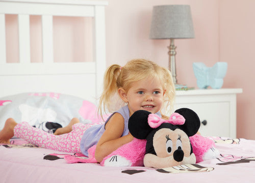 Dressed in pink and with a beautiful bow, it’s Minnie! The Disney Pillow Pets Pink Minnie features Minnie’s dot style, keeping things sharp and edgy for girls who love stylishness with a hint of feisty fun. Bring smiles to faces of all ages by offering the friendship and love of Minnie Mouse with this Pillow Pet so cuddly they’ll never want to put it down. Ideal for nap-time and bedtime - not to mention a comforting travel companion. Starts out as a plush toy, then opens up to quickly become a comfy pillow!