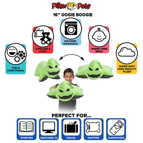 Pillow Pets and Disney teamed up to bring Jack Skellington, Oogie Boogie, and Zero out of the screen and into your home in as soft, cozy plushies that everyone can snuggle up with and enjoy. As Pillow Pets they're quite a fright and love to scare, until it’s time to sleep at which point they magically unfasten and turn into a cute and comfy pillows.