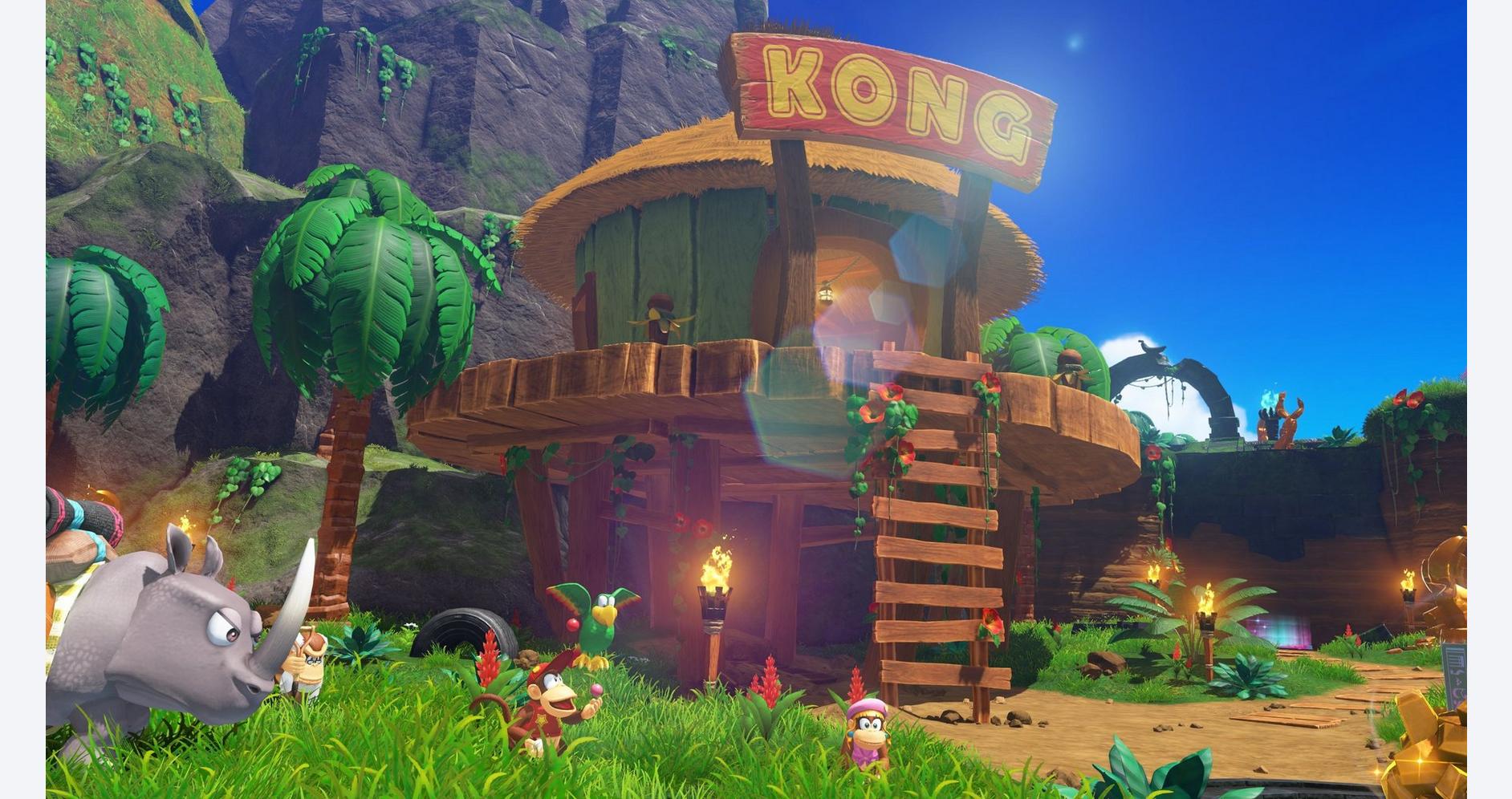 - Take in-game photos with familiar friends Diddy Kong, Dixie Kong, Cranky Kong, Rambi, and Squawks.