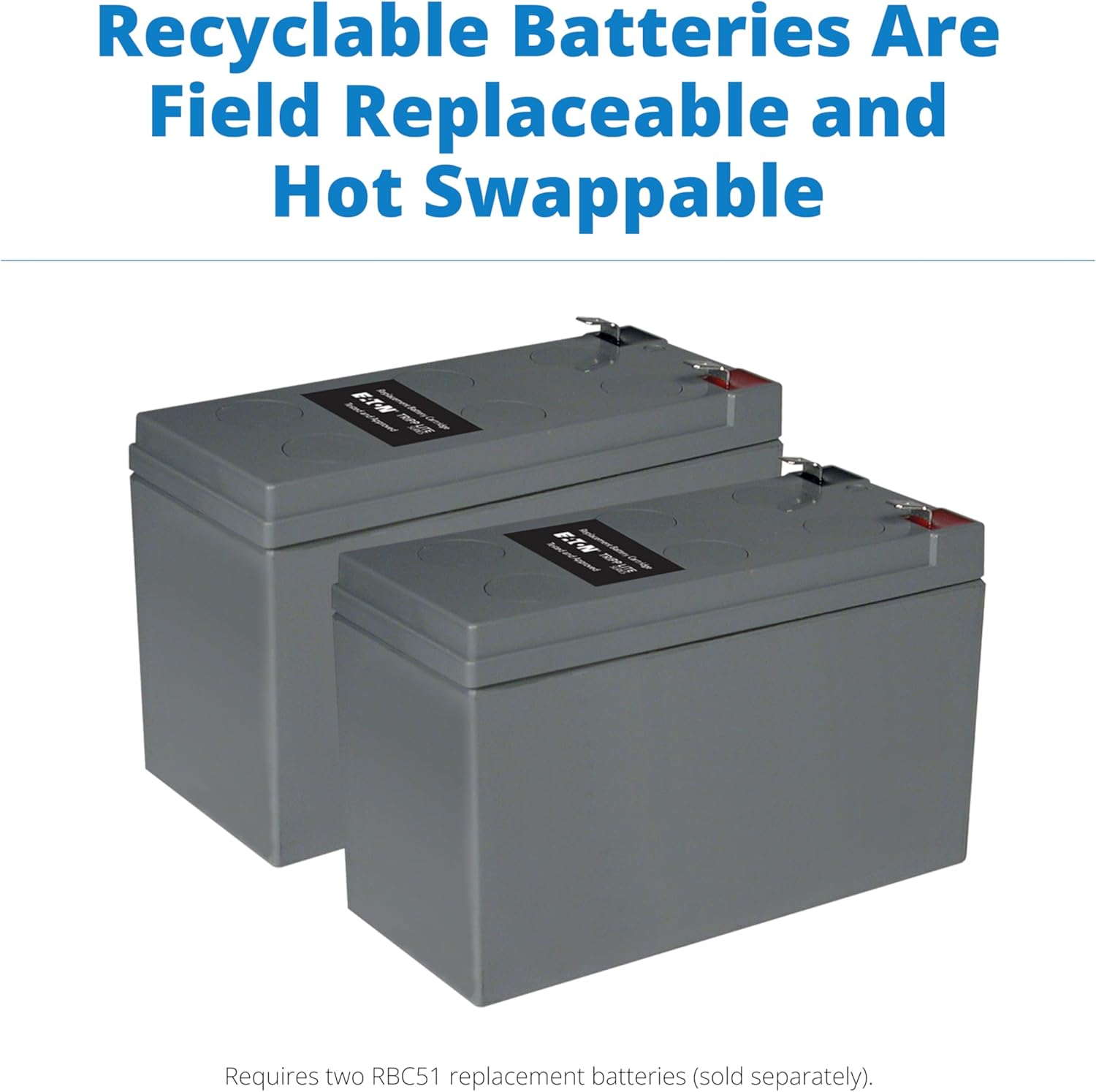 - ADVANCED POWER FEATURES: Internal batteries are easily user replaceable with Tripp Lite's RBC51 battery cartridge. LCD screen displays power information including battery runtime, wattage load, overload, AVR, input voltage, and battery statuses.