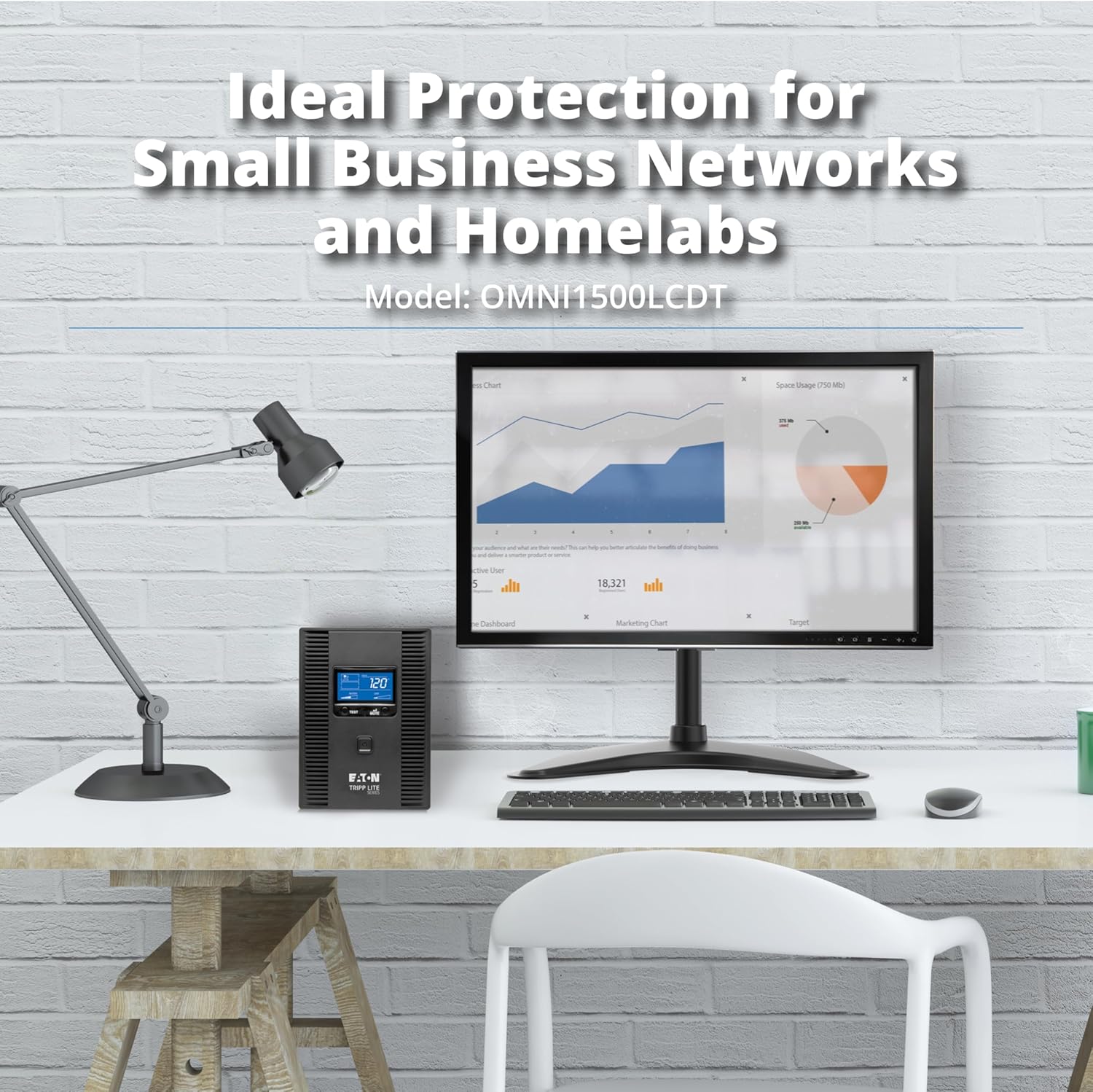 Eaton Tripp Lite series OMNI1500LCDT 1500VA UPS Battery Backup Computer Uninterruptible Power Supply Units & Surge Protector, 810W, 10 Outlets, AVR, LCD Screen, 3 Year Warranty & $250,000 Insurance