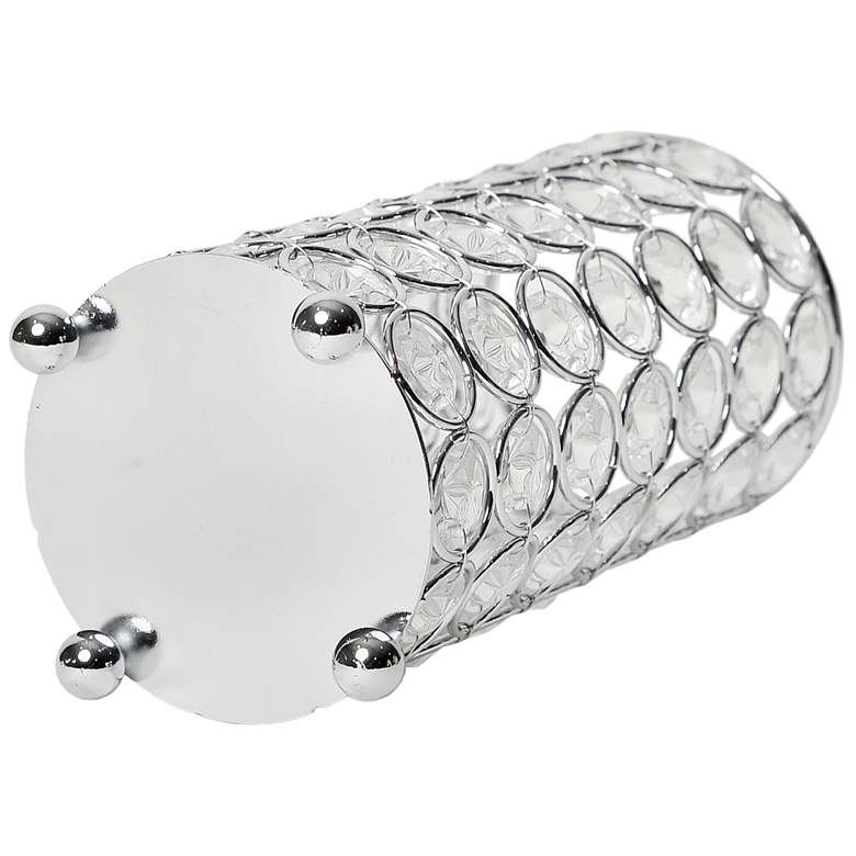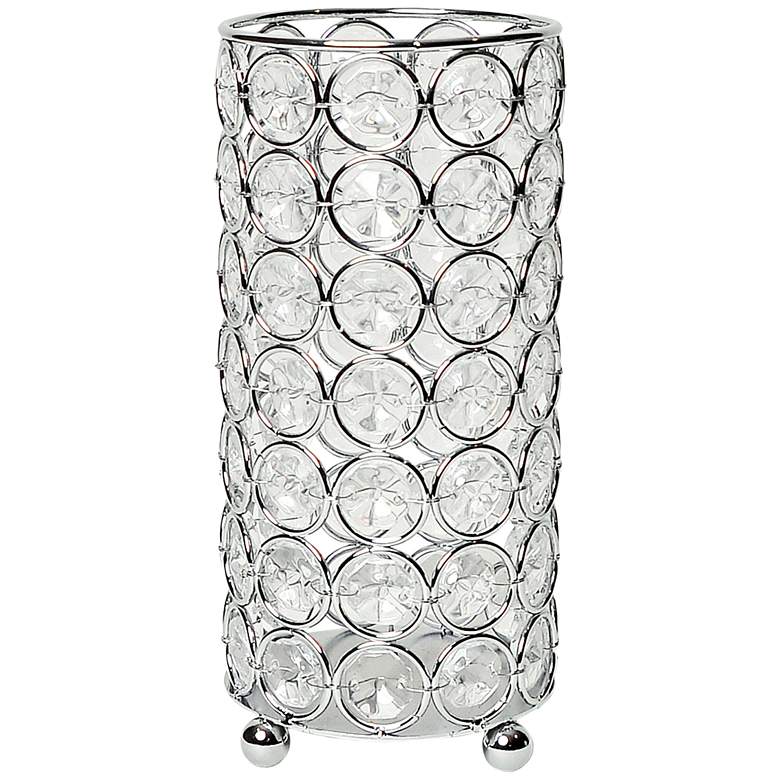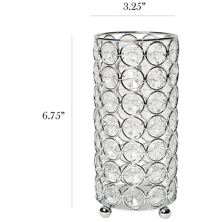 Crystal sets an elegant stage in any display, and this chic, gleaming crystal and chrome decorative candle holder fits right in. Faceted emblems line up symmetrically, fashioned from K5 crystal and rimmed by chrome finish metal. Ball shape metal feet add a fun touch to this decadent candle holder from the Elipse collection by Elegant Designs. Suitable for faux florals and unlit candles, as water and heat may cause damage.