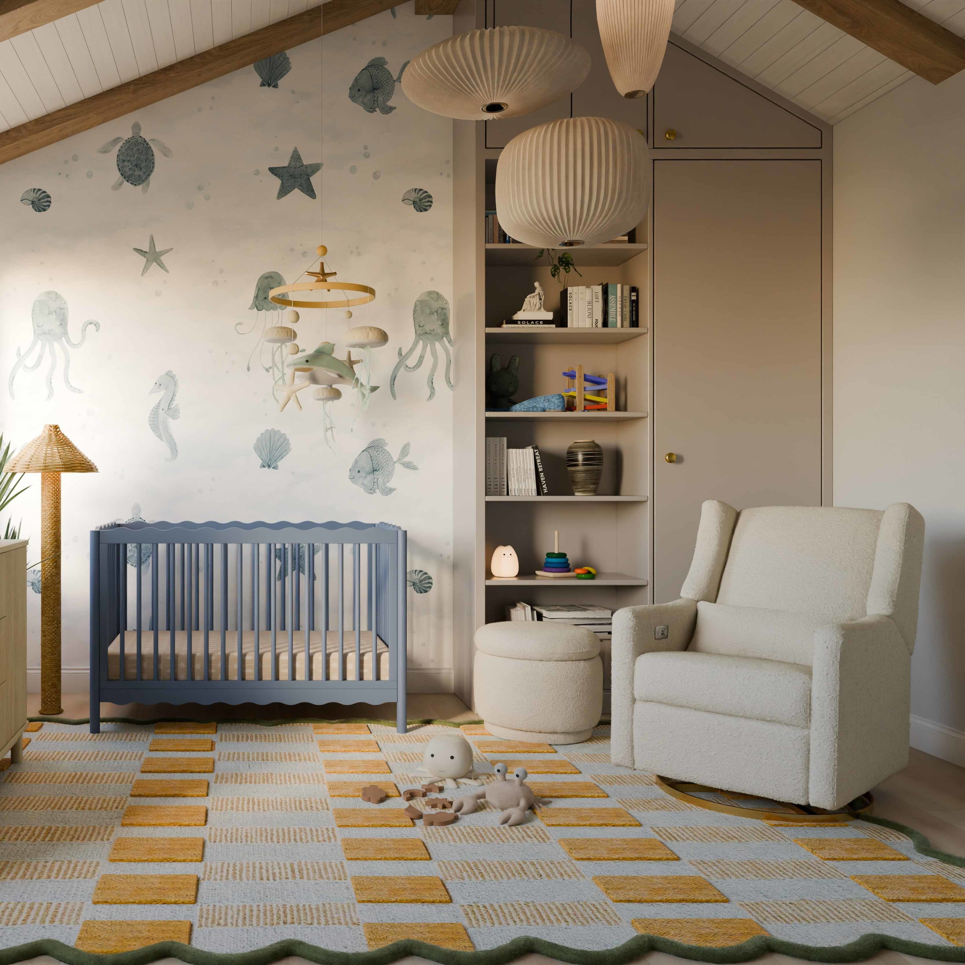 The Enoki Storage Ottoman is as functional as it is stylish, with its round, stacked look and ample storage for all of your baby's extra sheets and blankets. Upholstered by hand in our texture-rich boucle fabric, this trendy ottoman can be paired with any seating to create a statement piece in your nursery or home.