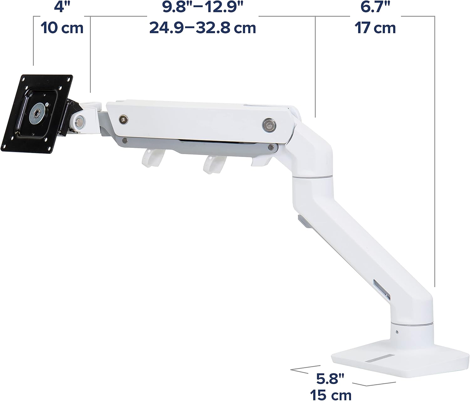 - Everything you need: Includes arm, extension; HD pivot, mounting hardware, two-piece desk clamp for surface edges 0.4 to 2.6 inches thick and grommet mount for installation through a surface hole