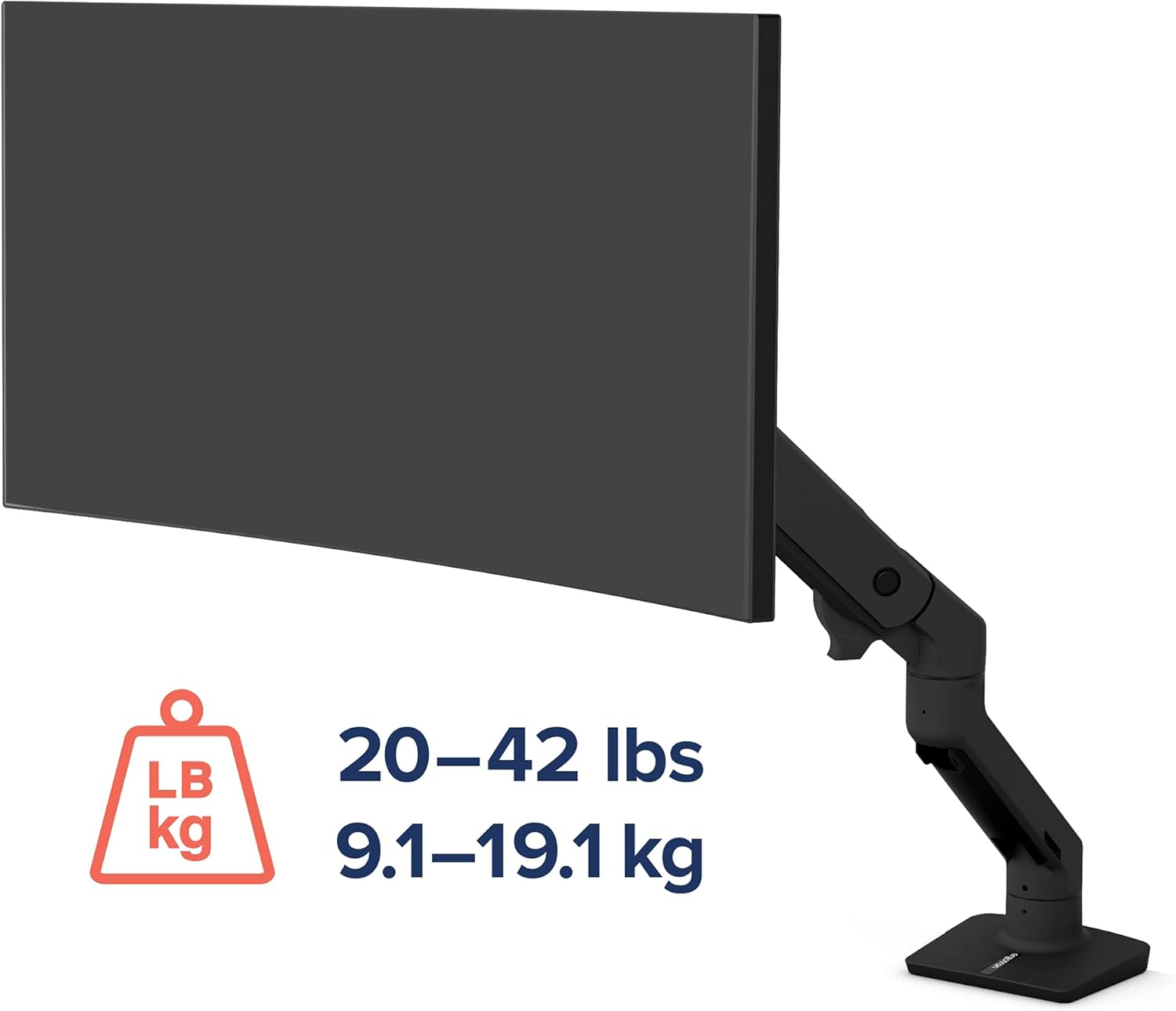 Ergotron – HX Premium Heavy Duty Monitor Arm, Single Monitor VESA Desk Mount – for Flat or Slight Curved Ultrawide Monitors Up to 49 inches, 20 to 42 lbs – Standard Pivot, Matte Black