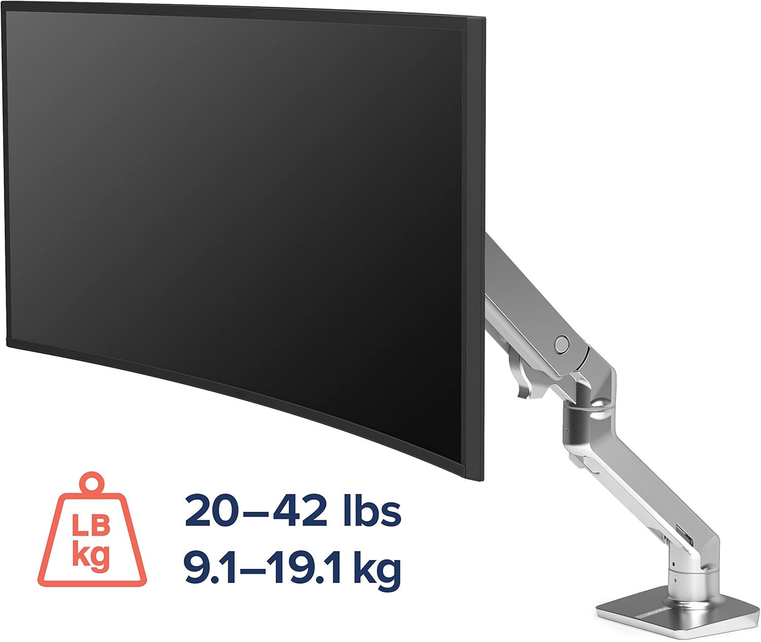 Ergotron – HX Premium Heavy Duty Monitor Arm, Single Monitor VESA Desk Mount – for Flat or Slight Curved Ultrawide Monitors Up to 49 inches, 20 to 42 lbs – Standard Pivot, Polished Aluminum