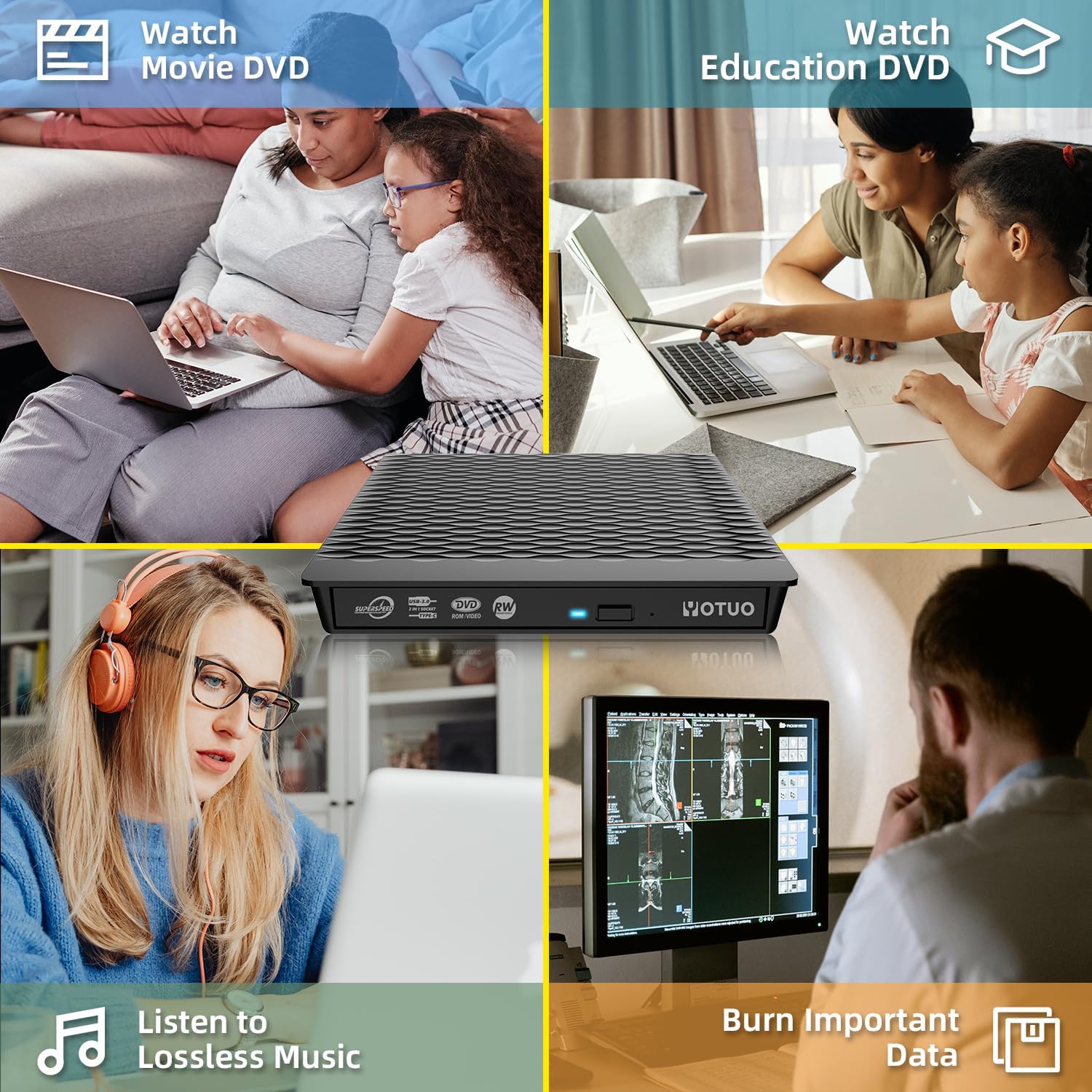 - 【High speed】Features a dual USB 3.0 and Type C port. Maximum DVD reading speed of 8x; maximum CD reading speed of 24x. Giving you faster data transfer speeds (up to 5Gbps), play music and movies without lag or distortion.