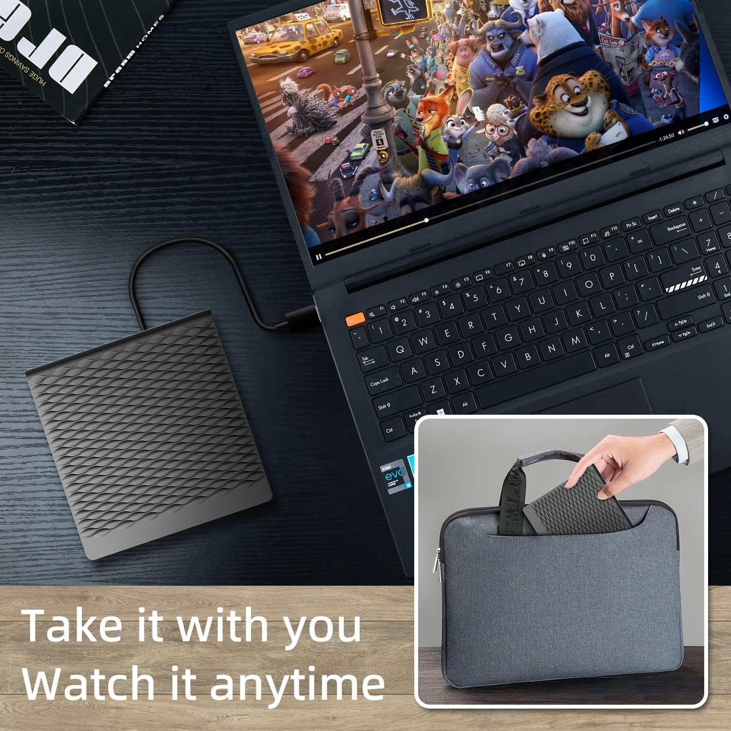 - 【Easy to carry and stylish appearance】Recessed cable design for easy cable organisation. The body is slim, sleek and minimalist, scratch-resistant and comes with a fleece pouch. This CD/DVD drive is only 1.8 cm thick and weighs approximately 0.4 kg. It can easily fit into your travel bag, take it with you and connect it wherever you go.