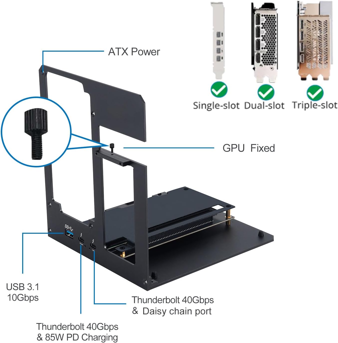 - NOTE: Please make sure your laptop or your device has a Thunderbolt 4 or Thunderbolt 3 or USB 4 Port, otherwise it can not be used. And package does not contain the ATX power and does not contain the graphics card