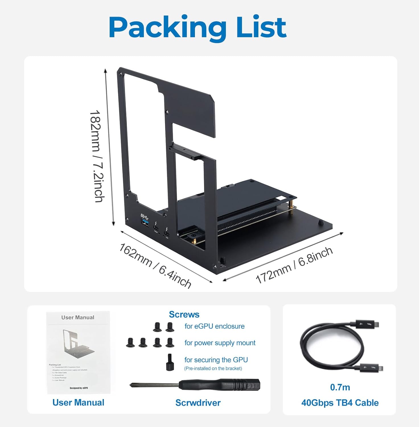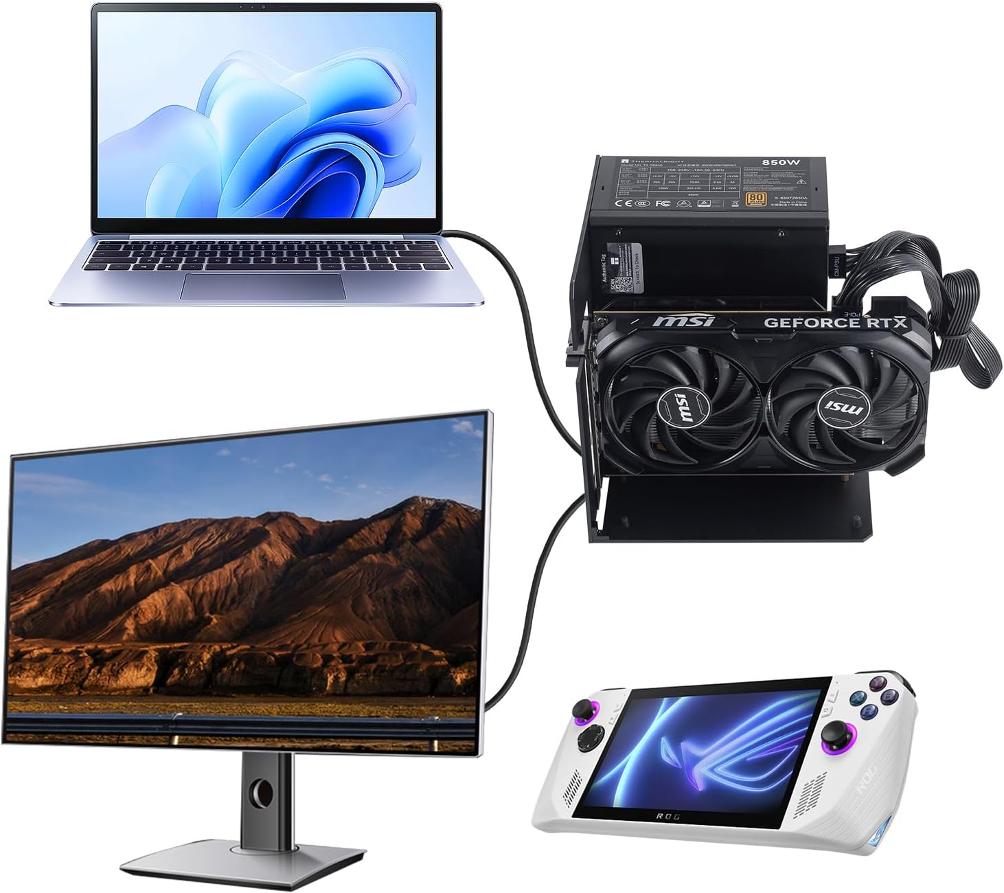 - Wide Compatibility: The eGPU dock is compatible with NUCs, laptops, and gaming machines featuring USB4/TB3/TB4 interfaces. Support NVIDIA (including latest RTX 50 Series 5090 D/5080/5070 Ti/5070, etc.)/AMD (including latest RX 7000 Series) GPU