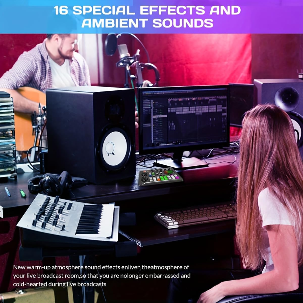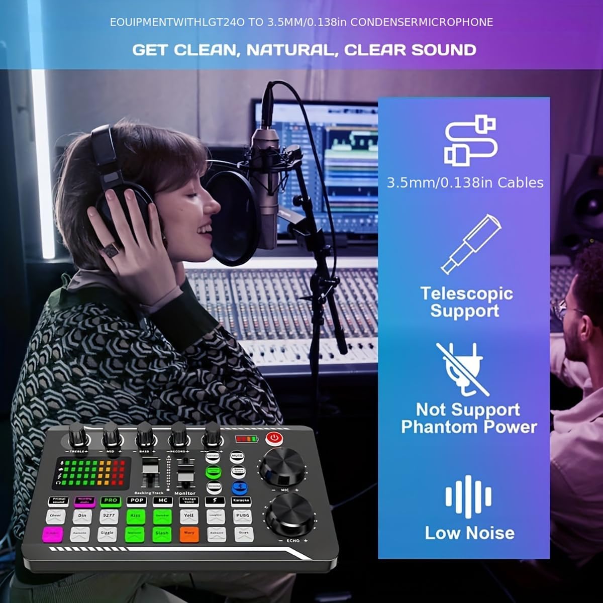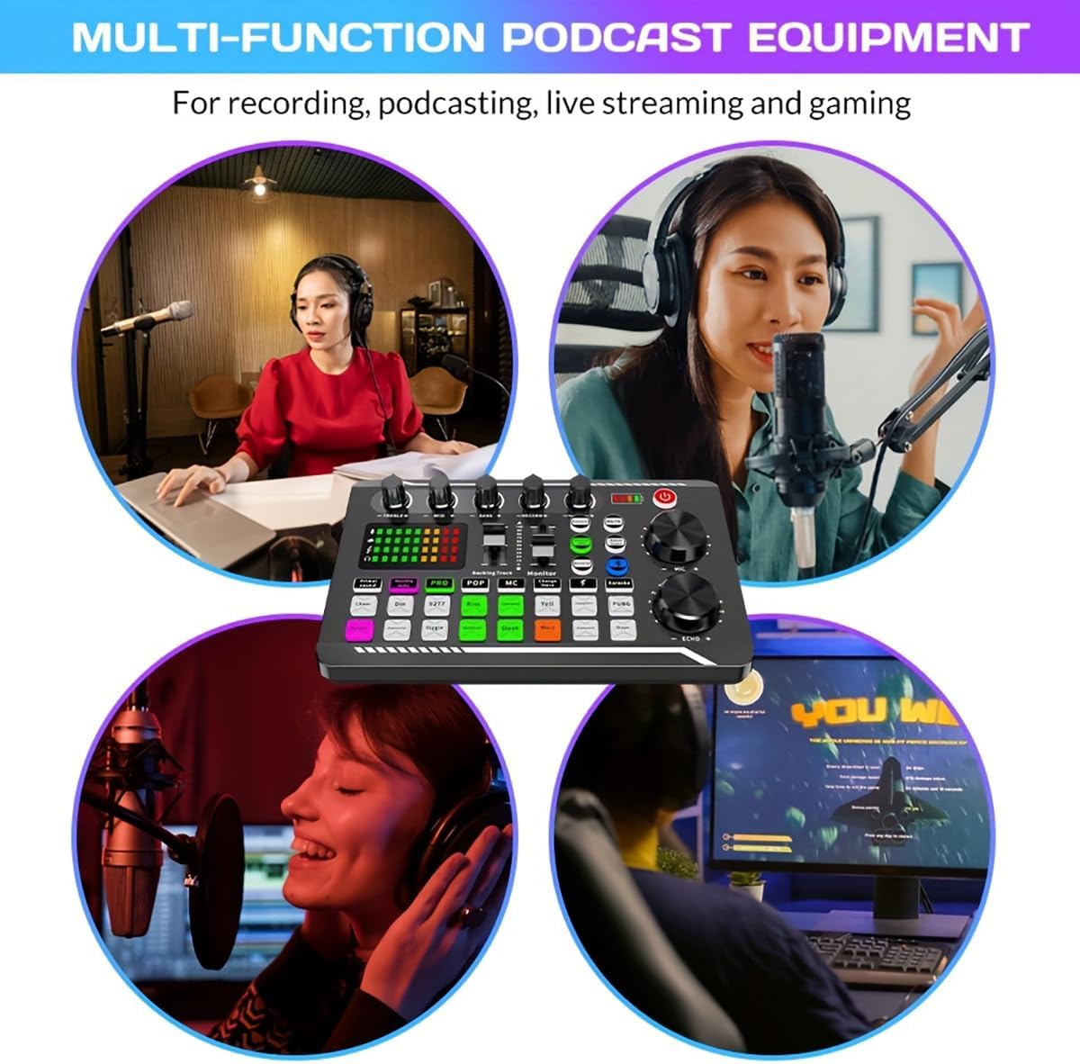 - All-in-One Sound Effects Board: Ultimate audio interface bundle for creators. Combines a sound mixer board, voice transformer, Bluetooth receiver, and FX processor – perfect for home studios, gaming commentary, music recording, and live broadcasts