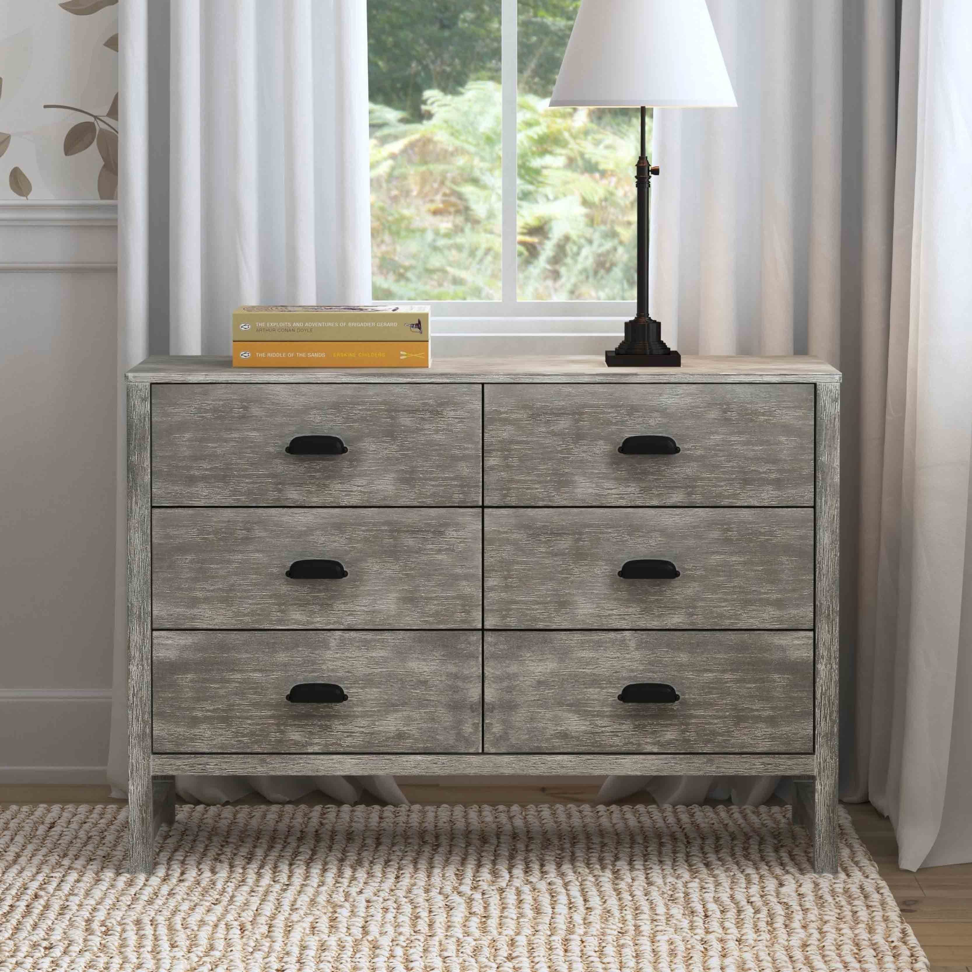 The farmhouse inspired Fairway 6-Drawer Double Dresser is a functional and stylish addition to the home. Features 6 spacious drawers finished in a rustic scratch finish, clean slim feet, and classic cup drawer pulls. Pair with the Fairway 3-Drawer Dresser.