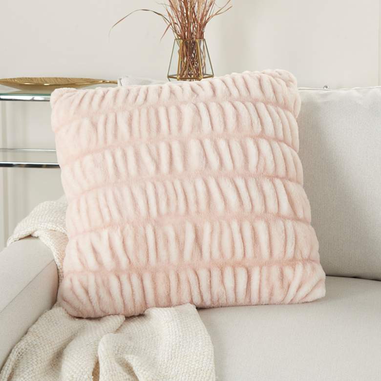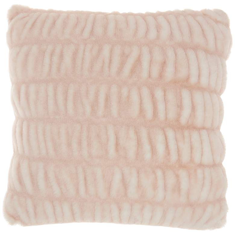 Faux Fur Blush Ruched Rabbit 20" Square Throw Pillow