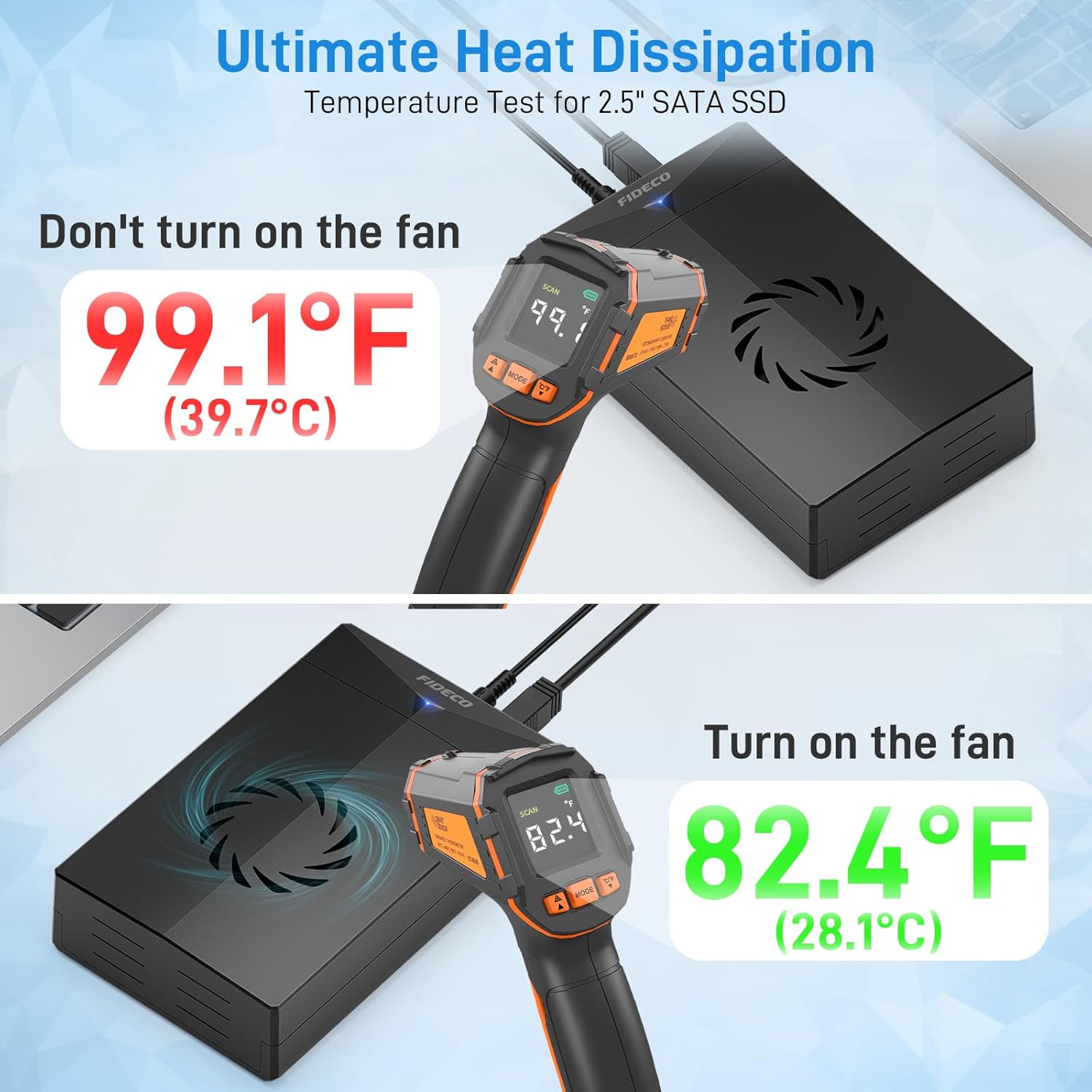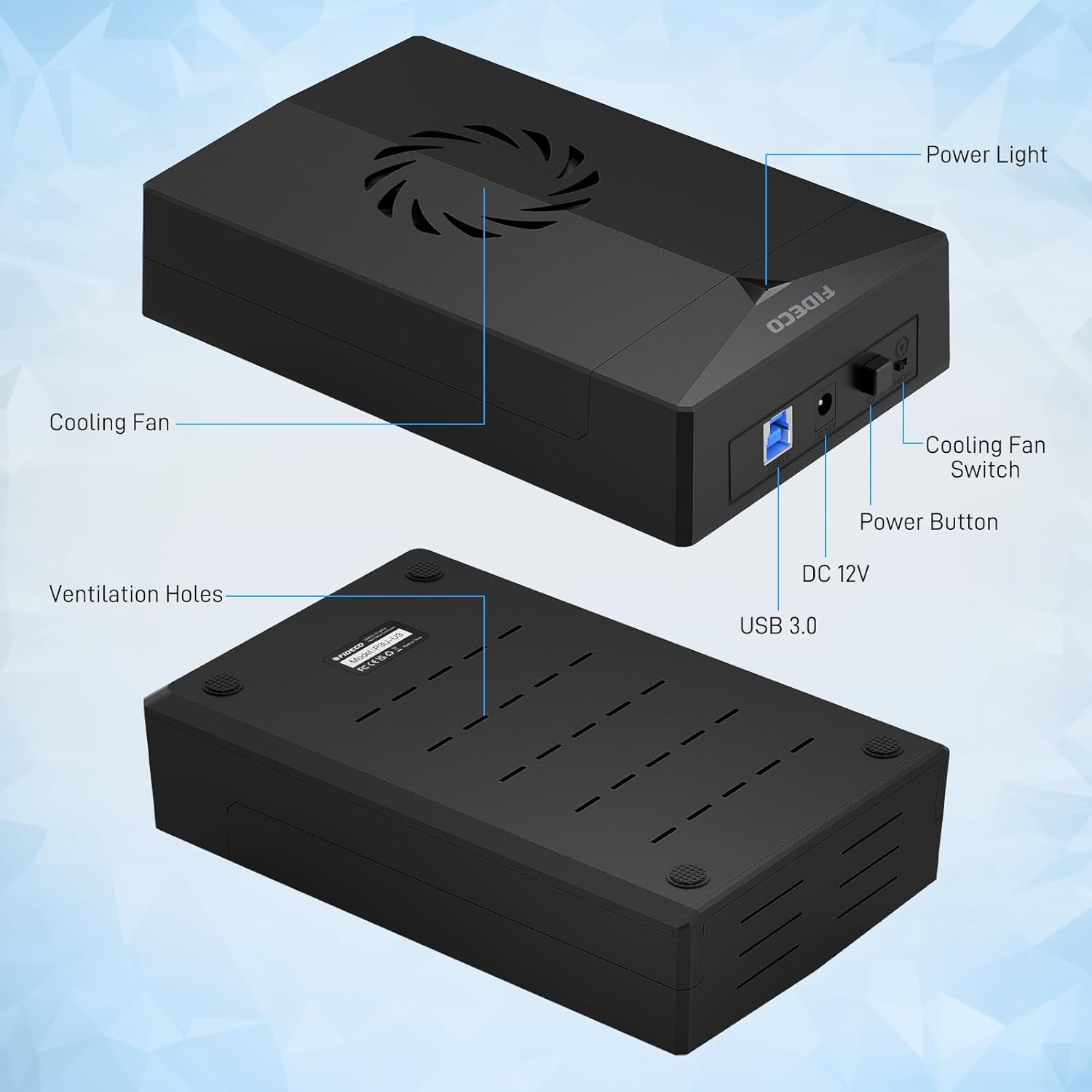 FIDECO Hard Drive Enclosure, USB 3.0 to SATA Hard Drive Docking Station for 3.5 or 2.5 inch SATA HDD SSD with Cooling Fan, 12V Power Adapter Included, Support UASP