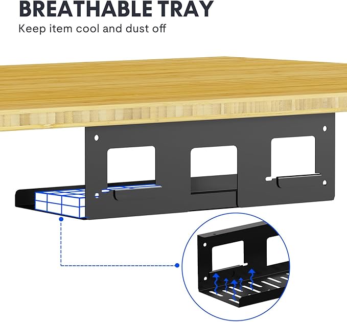 - Airflow Open Design: Equipped with an open ventilation design, this tray keeps your workspace and cords neat and free from dust accumulation. This smart open design also allows you to easily add or remove your cords without experiencing the hassle of knots and annoying entanglements.