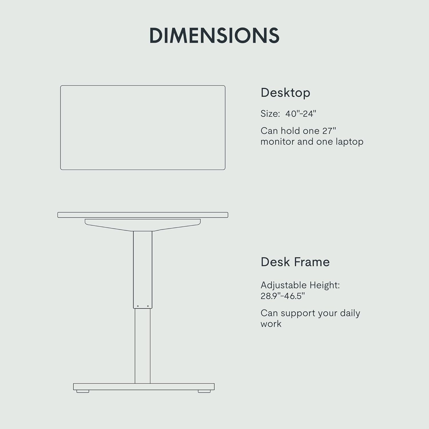 - SMOOTH ELECTRIC HEIGHT ADJUSTMENT: Say goodbye to manual height adjustments. This desk is equipped with an electric lift system that allows you to easily adjust the desk's height from 28.9" to 46.5". Even better, the motor operates quietly with noise levels below 50 dB, ensuring a peaceful working environment.