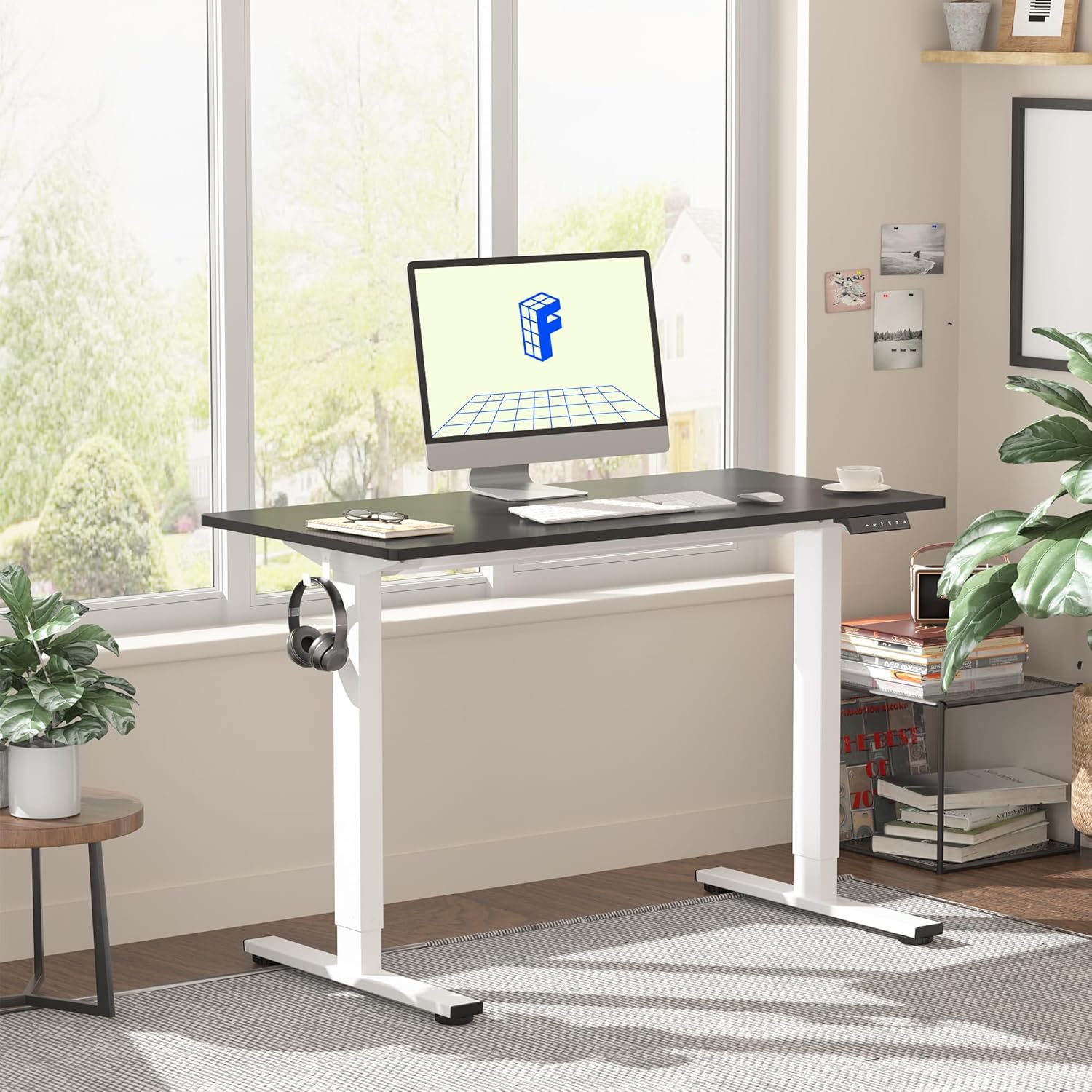 FLEXISPOT EN1 One-Piece Standing Desk, 40 x 24 Inches Large Height Adjustable Desk, Electric Sit Stand Desk Home Office Table Computer Workstation (White Frame + Black Desktop, 2 Packages)