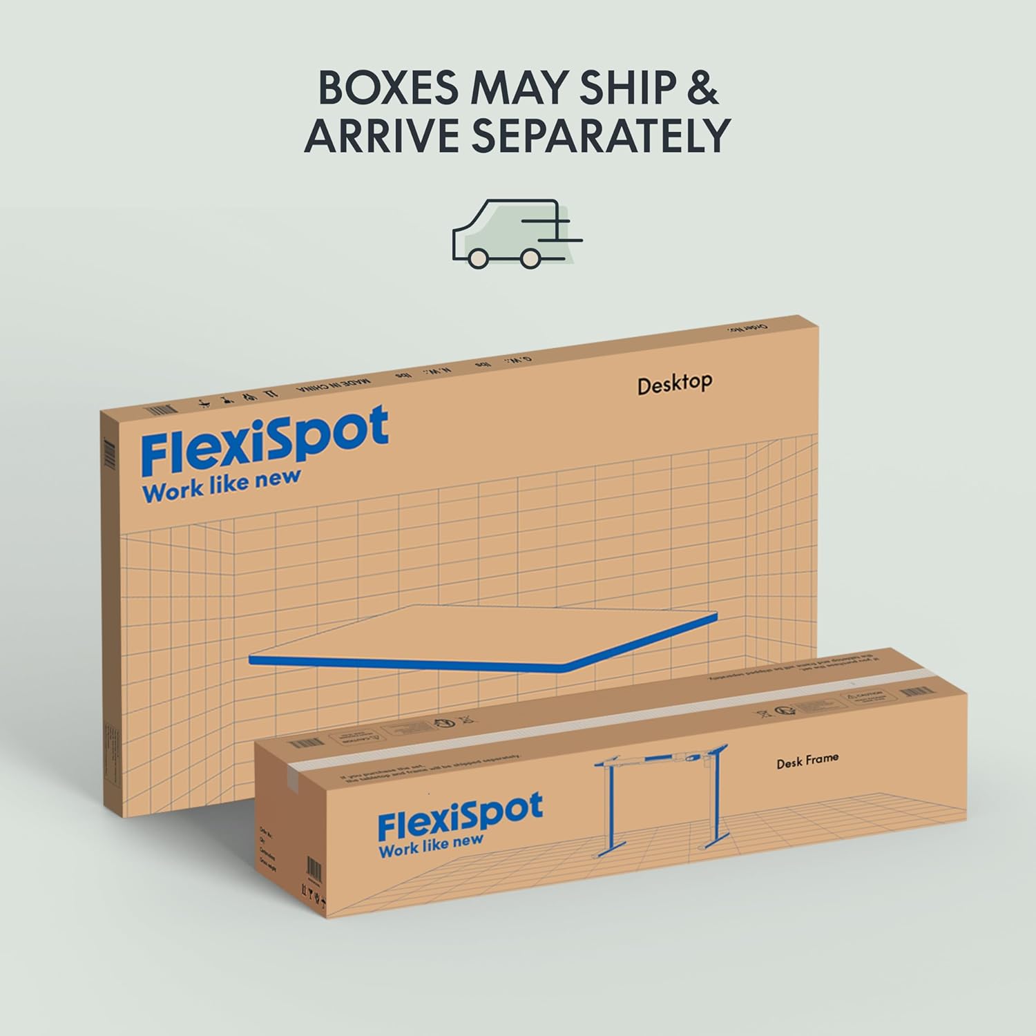 FLEXISPOT EN1 One-Piece Standing Desk, 48 x 30 Inches Electric Height Adjustable Desk for Home Office (White Frame + Black Desktop, 2 Packages)