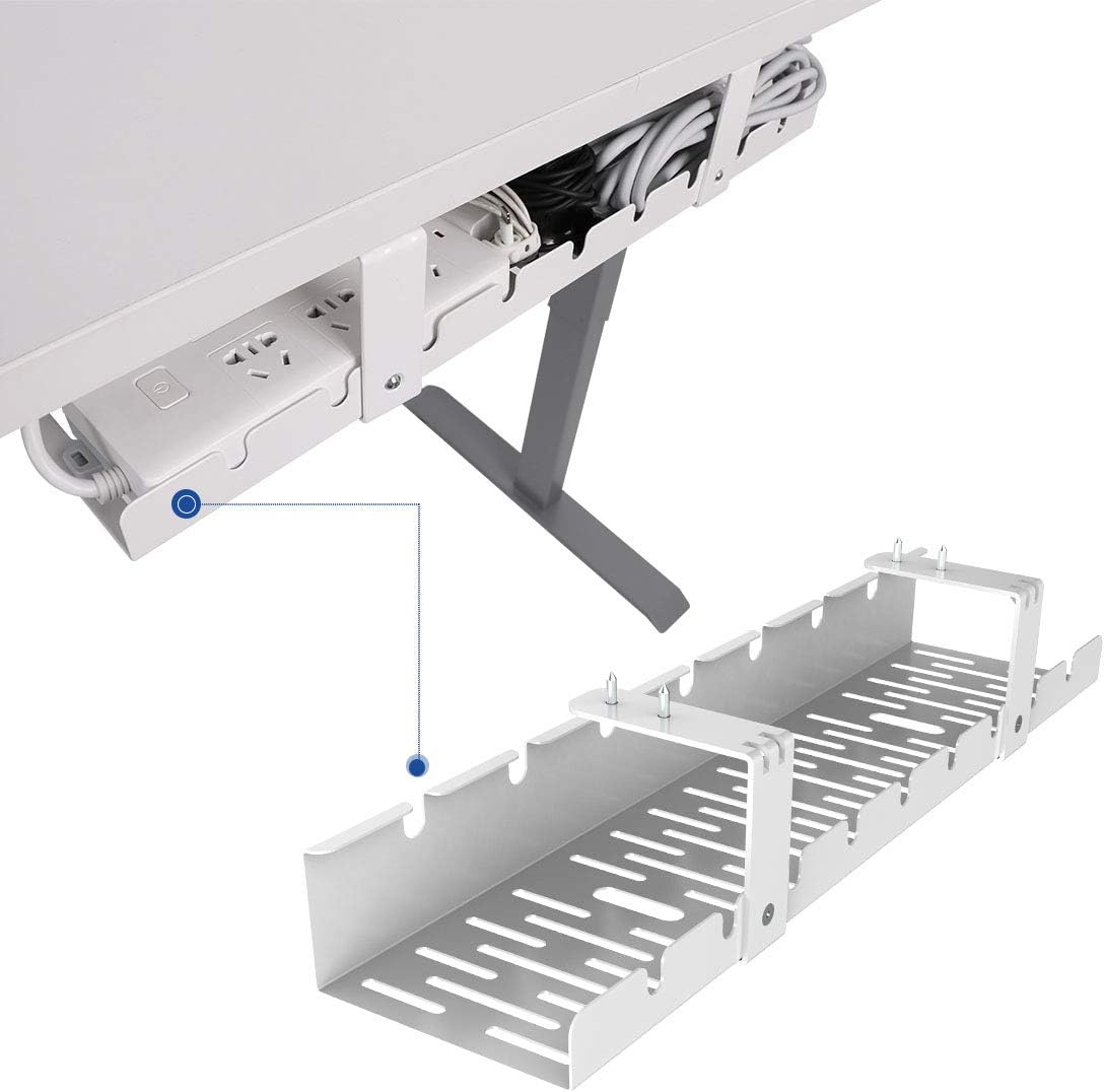 FLEXISPOT Under Desk Cable Management Tray, Metal Raceway Wires Cable Tidy Organizer Office and Home Cable Tray Use for Standing Desk (White)