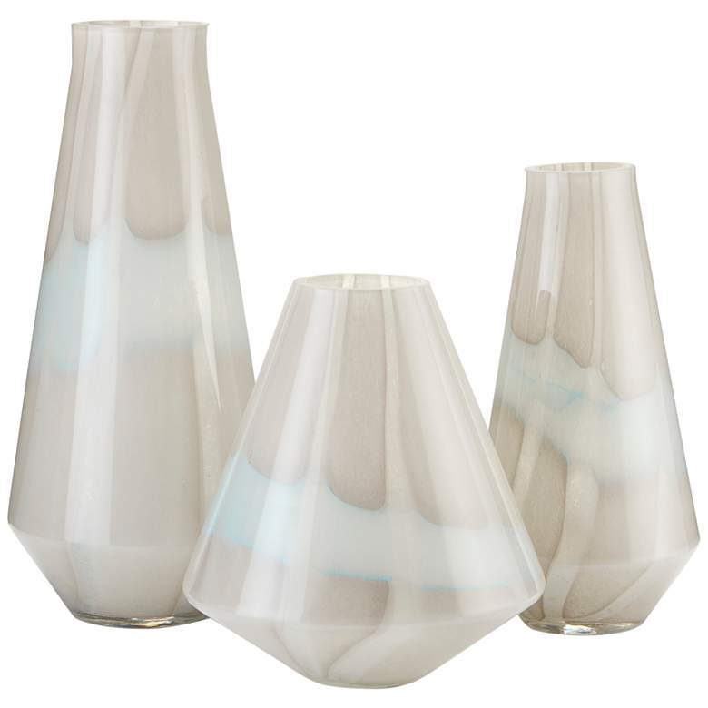 Floating Cloud Light Gray and White Glass Vases Set of 3